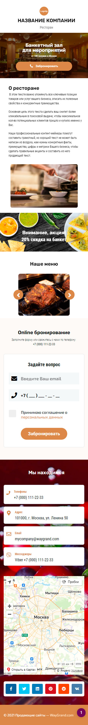 Закажите готовый продающий сайт визитка #0449101 в за 5-7 дня «под ключ»: свёрстан, отрисован и готов к рекламе. Тематика шаблона «Банкетный зал для мероприятий».