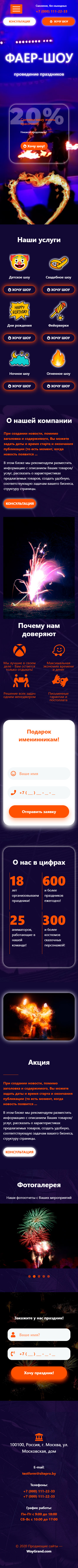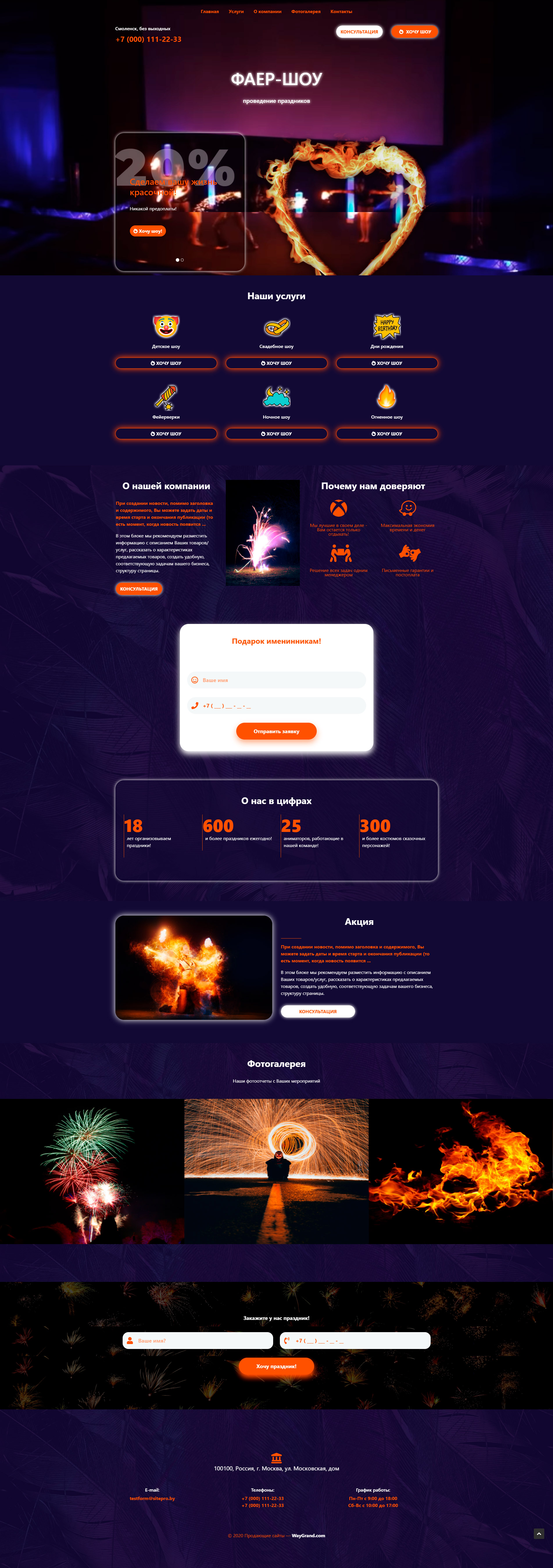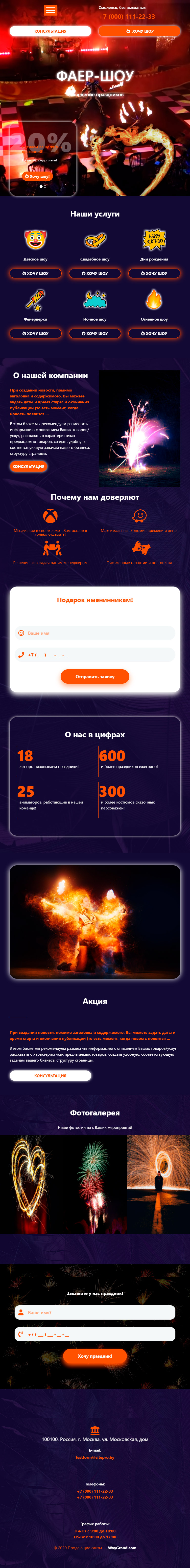 Закажите готовый продающий сайт лендинг #0451201 в за 1-3 дня «под ключ»: свёрстан, отрисован и готов к рекламе. Тематика шаблона «Фаер Шоу».