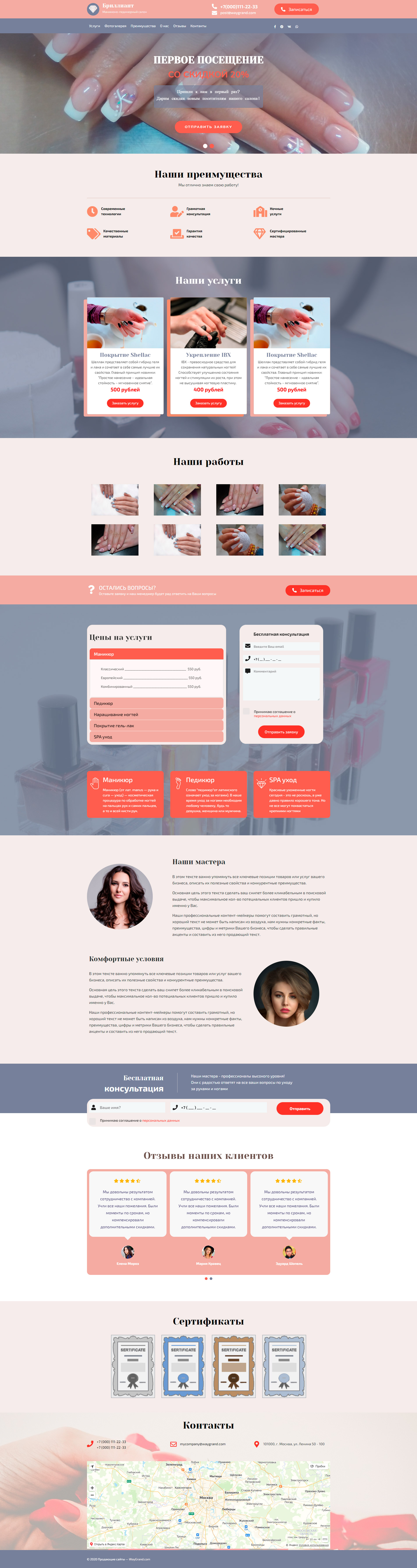 Закажите готовый продающий сайт лендинг #1107201 в за 1-3 дня «под ключ»: свёрстан, отрисован и готов к рекламе. Тематика шаблона «Салон маникюра и педикюра».