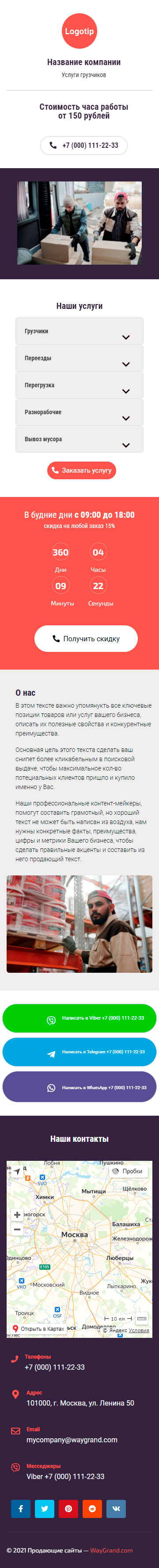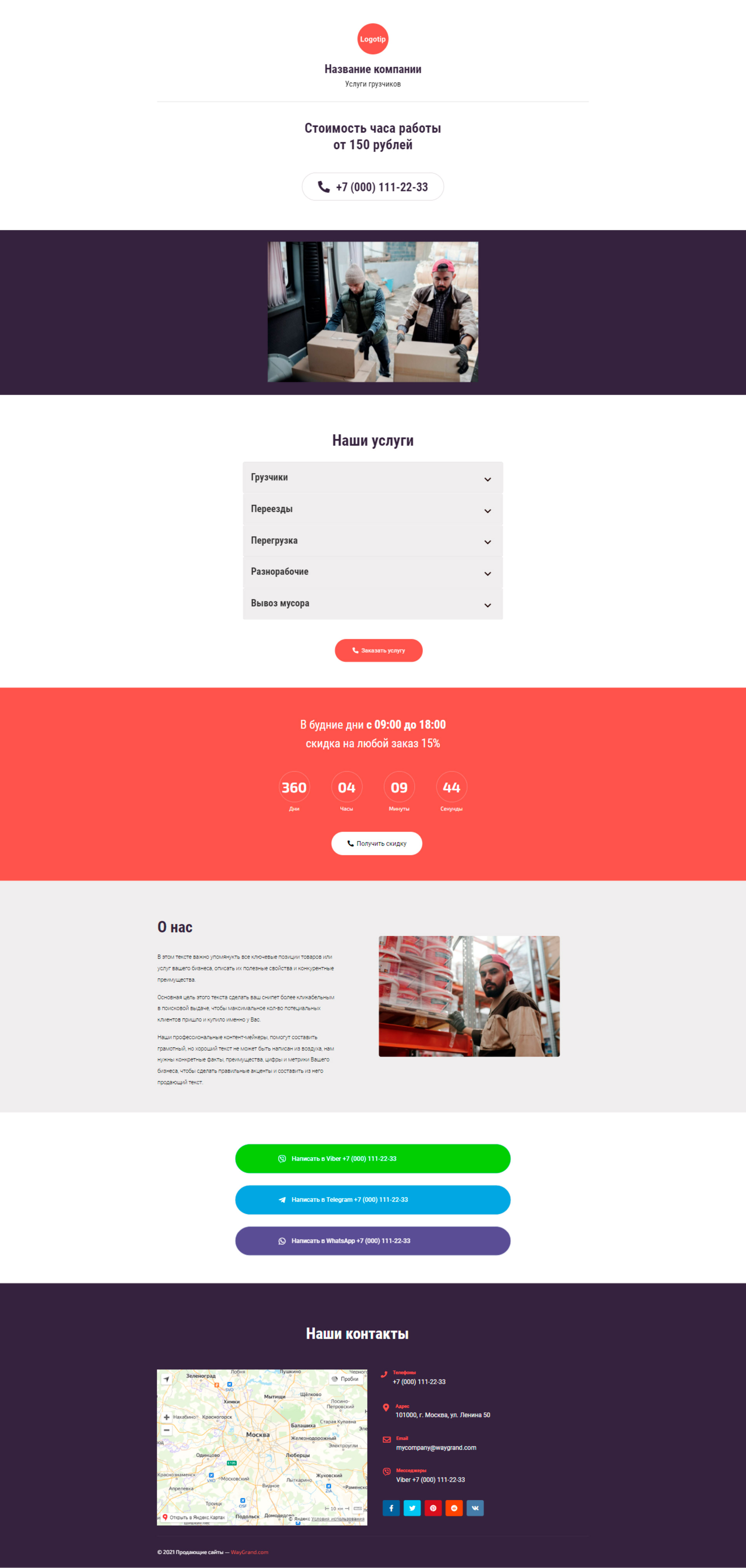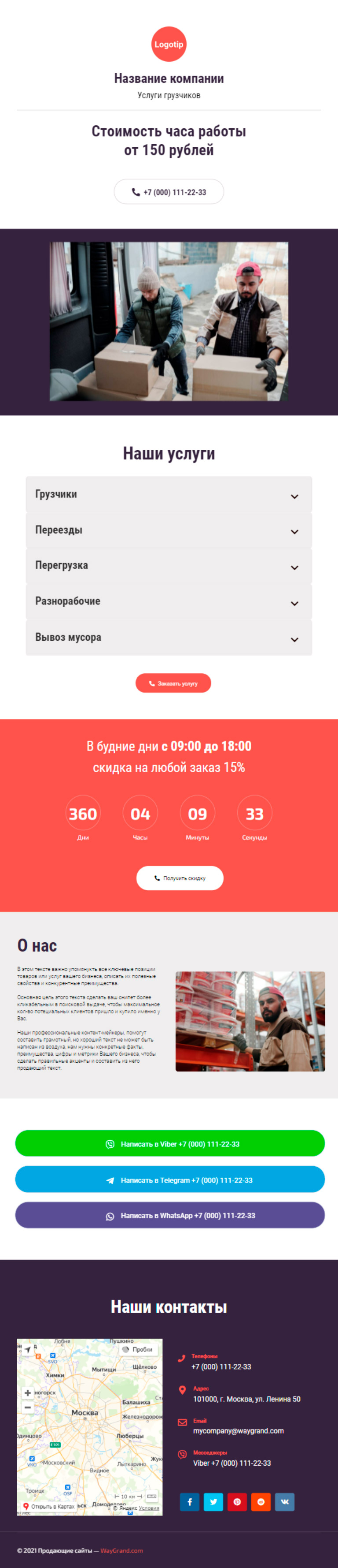 Закажите готовый продающий сайт визитка #2562101 в за 5-7 дня «под ключ»: свёрстан, отрисован и готов к рекламе. Тематика шаблона «Услуги грузчиков».