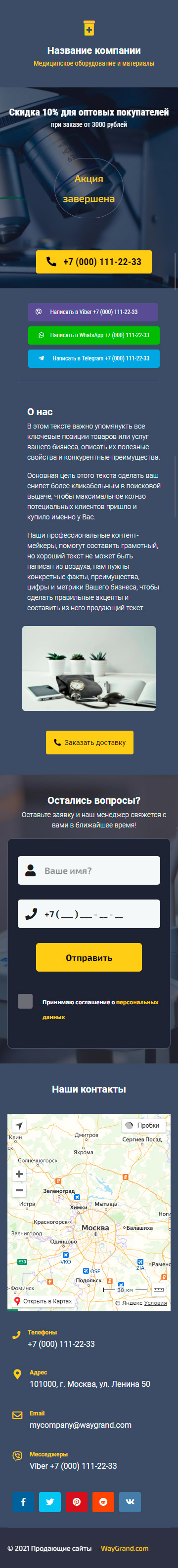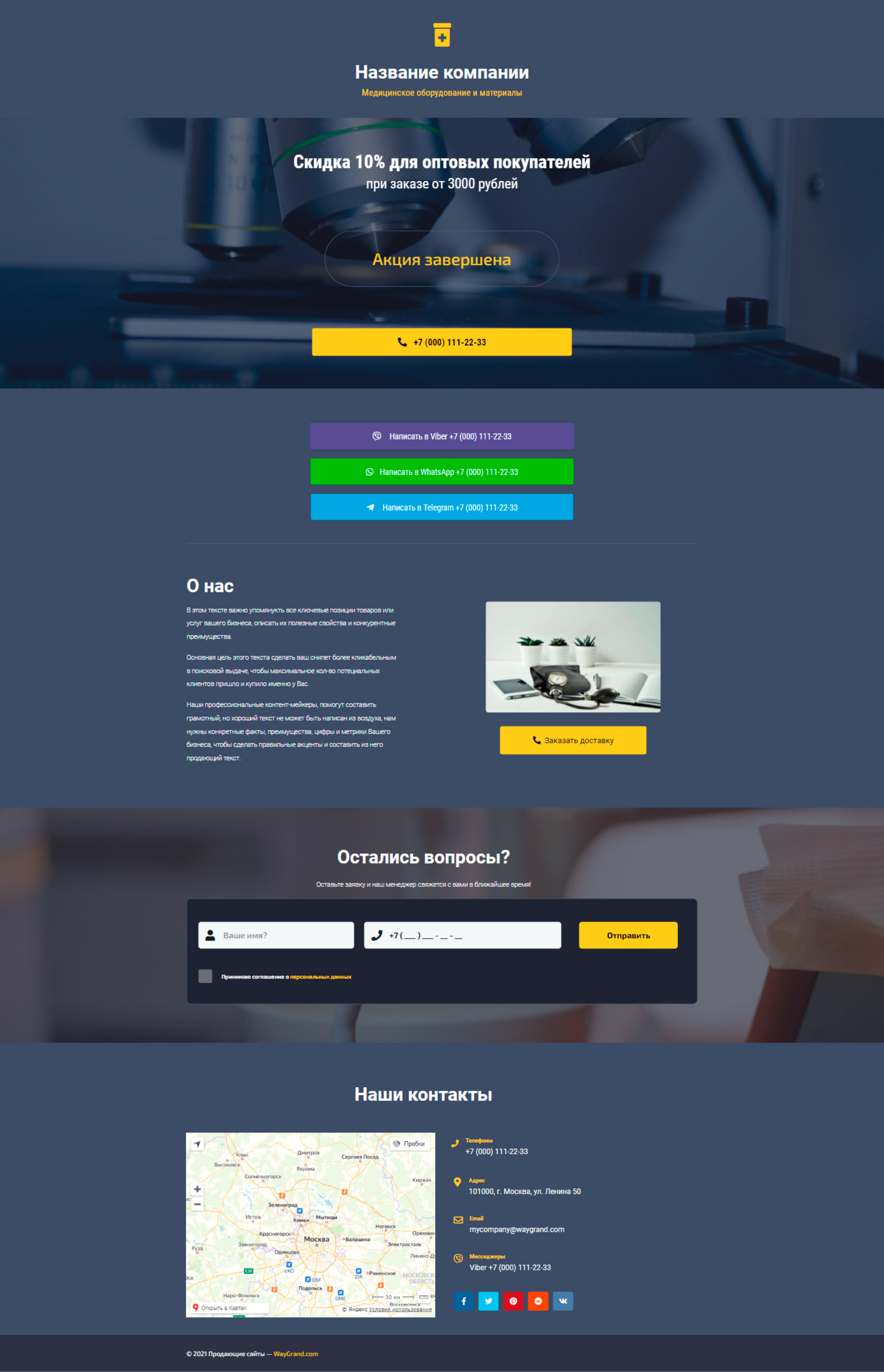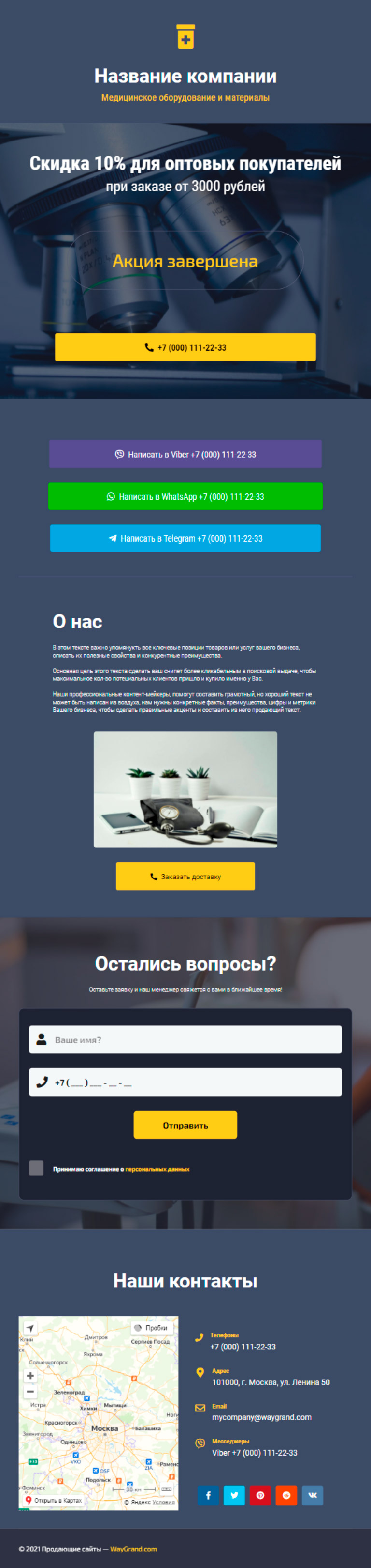 Закажите готовый продающий сайт визитка #1027101 в за 5-7 дня «под ключ»: свёрстан, отрисован и готов к рекламе. Тематика шаблона «Медицинское оборудование и материалы».