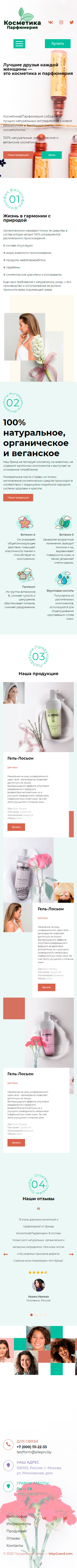 Закажите готовый продающий сайт лендинг #1102207 в за 1-3 дня «под ключ»: свёрстан, отрисован и готов к рекламе. Тематика шаблона «Косметика и парфюмерия».