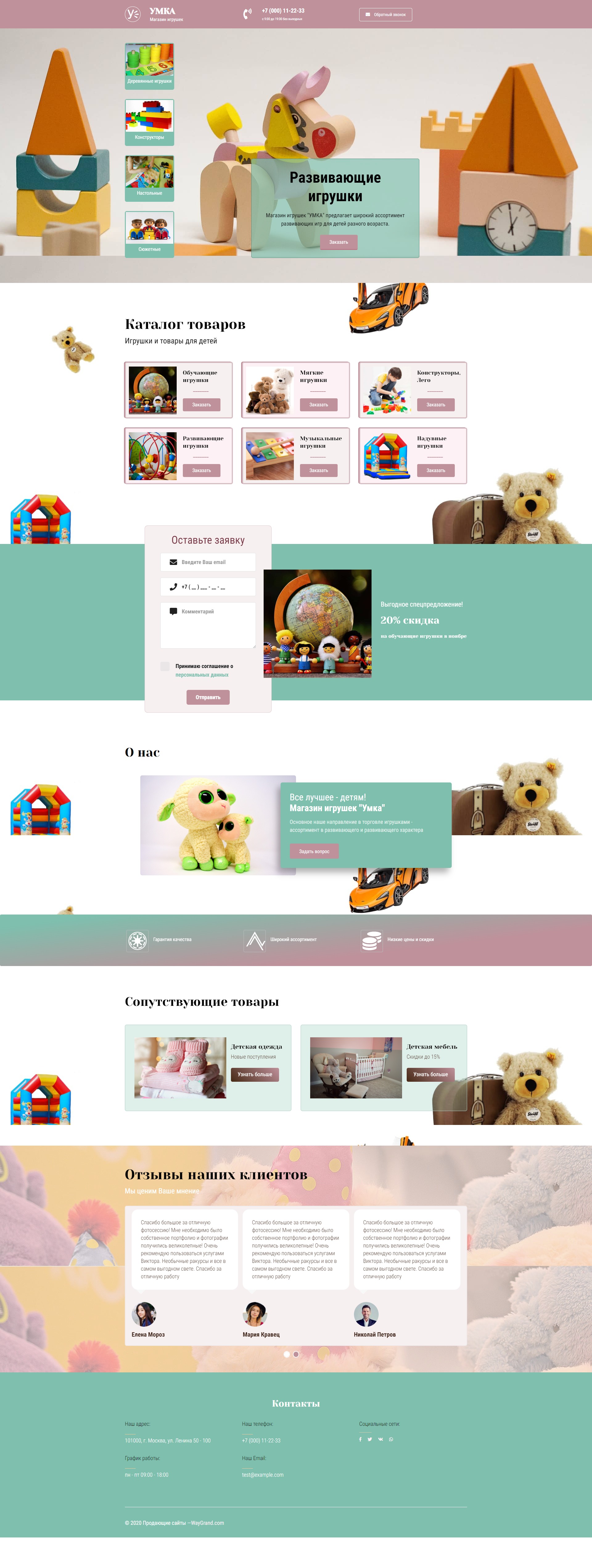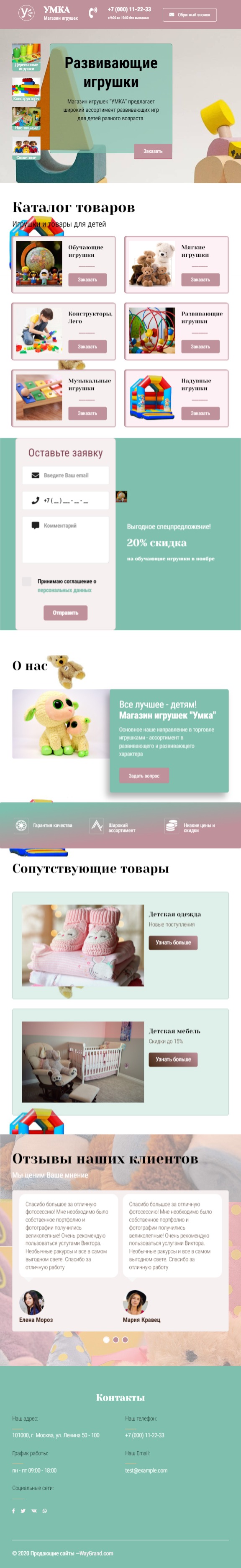 Закажите готовый продающий сайт лендинг #2442201 в за 1-3 дня «под ключ»: свёрстан, отрисован и готов к рекламе. Тематика шаблона «Магазин игрушек».