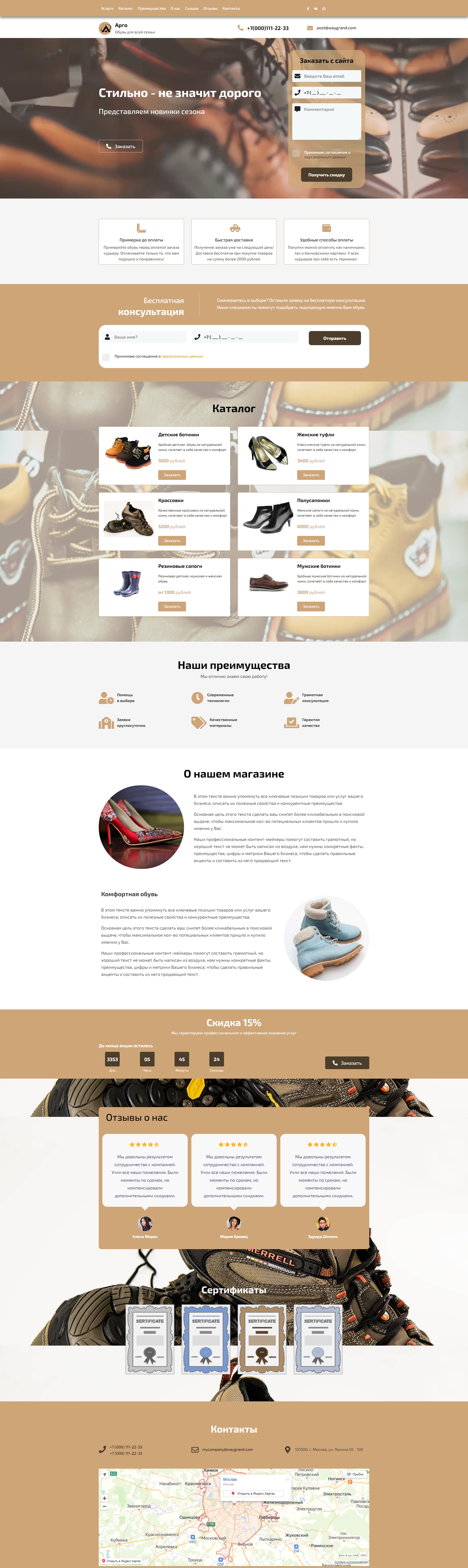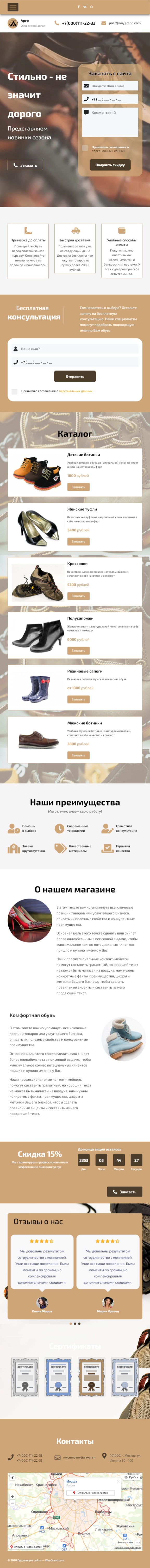 Закажите готовый продающий сайт лендинг #1516201 в за 1-3 дня «под ключ»: свёрстан, отрисован и готов к рекламе. Тематика шаблона «Обувь, стильная».