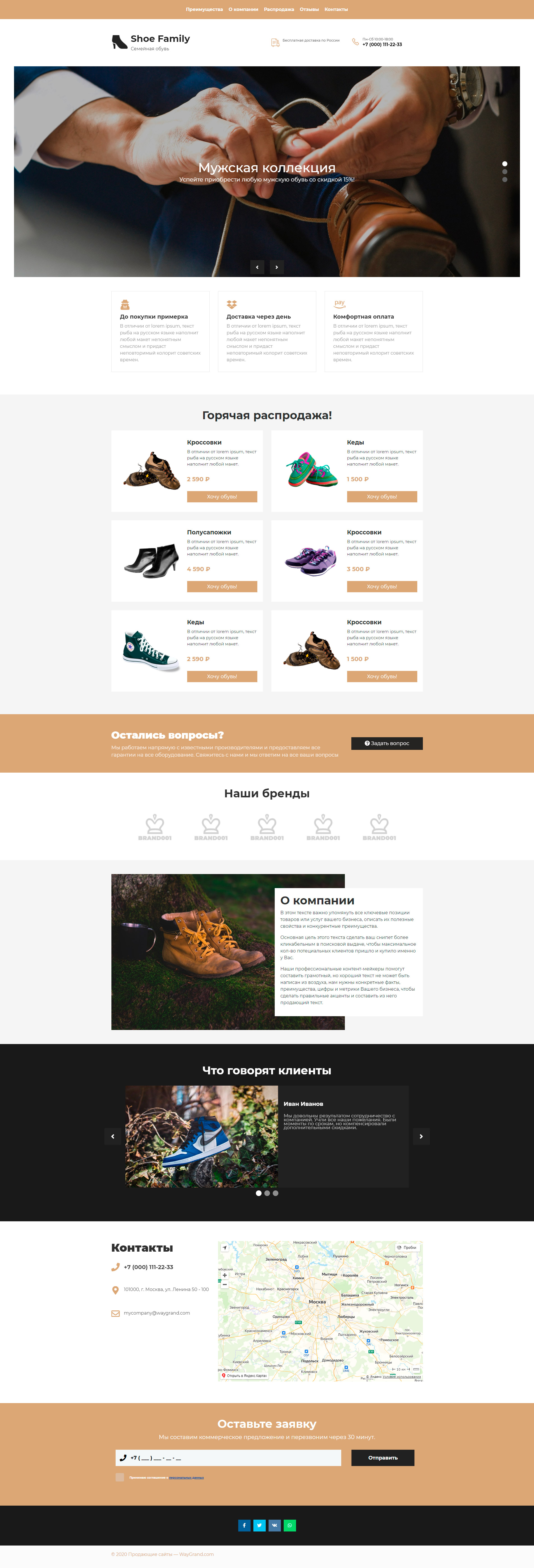 Закажите готовый продающий сайт лендинг #1517201 в за 1-3 дня «под ключ»: свёрстан, отрисован и готов к рекламе. Тематика шаблона «Обувь».