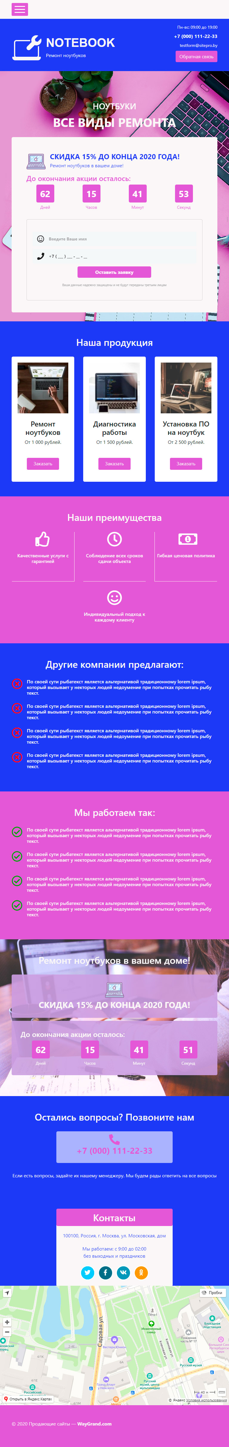 Закажите готовый продающий сайт лендинг #0719201 в за 1-3 дня «под ключ»: свёрстан, отрисован и готов к рекламе. Тематика шаблона «Ремонт ноутбуков».