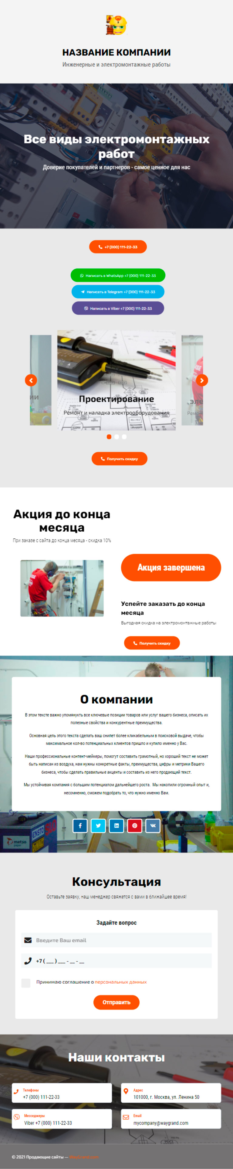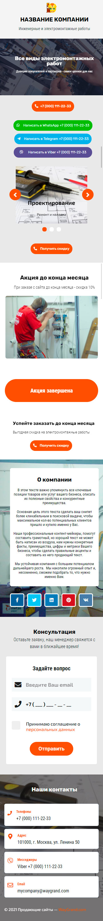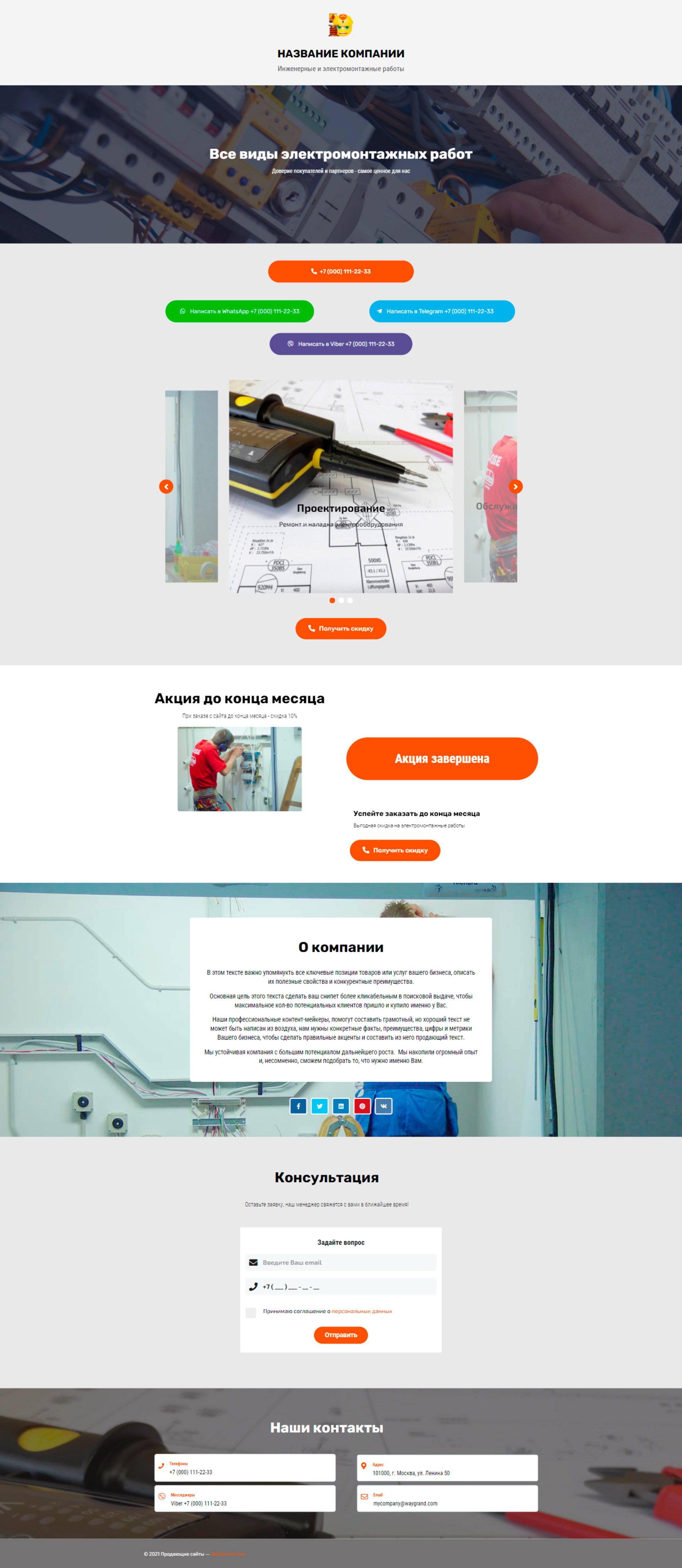 Закажите готовый продающий сайт визитка #2189101 в за 5-7 дня «под ключ»: свёрстан, отрисован и готов к рекламе. Тематика шаблона «Инженерные и электромонтажные работы».