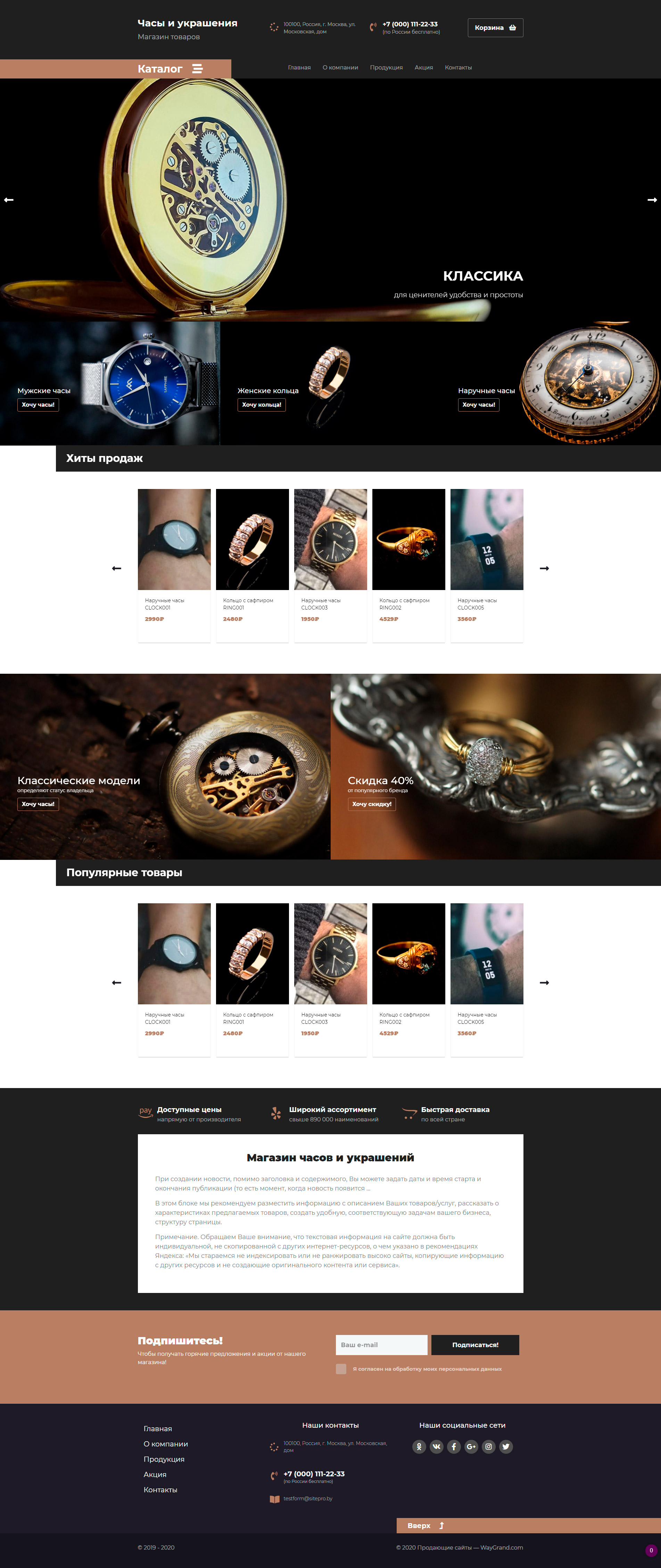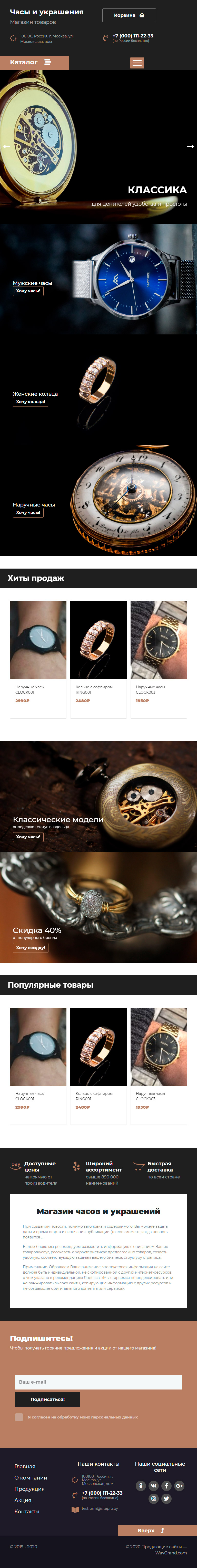 Закажите готовый продающий сайт лендинг #2437201 в за 1-3 дня «под ключ»: свёрстан, отрисован и готов к рекламе. Тематика шаблона «Часы и украшения».