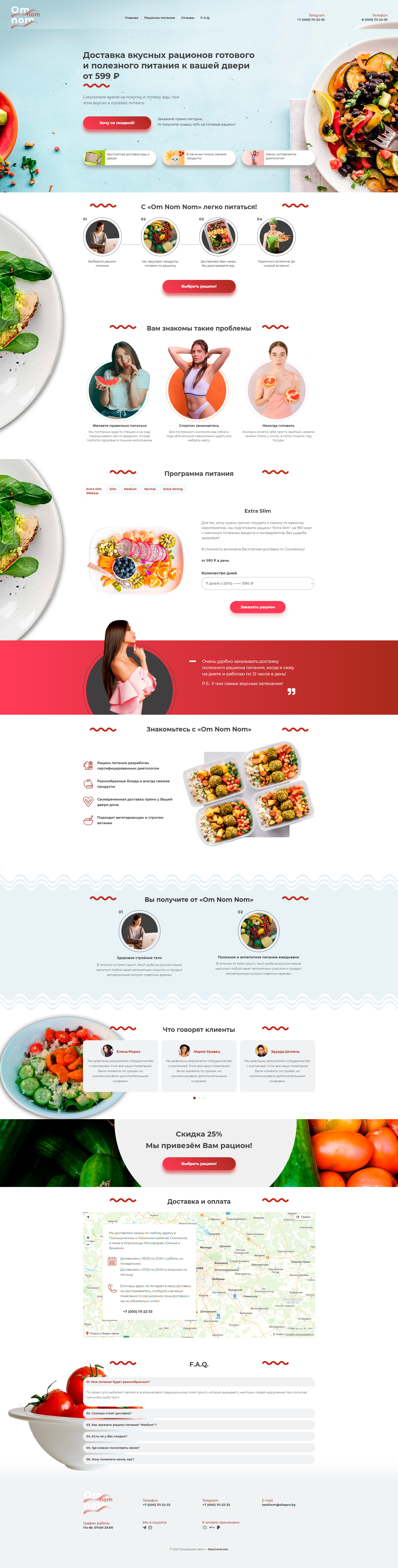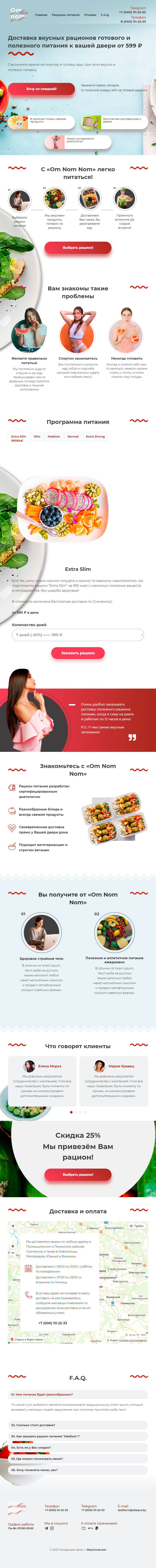 - Промоблок "Доставка вкусных рационов" с кнопкой призыва к действию "Хочу со скидкой"