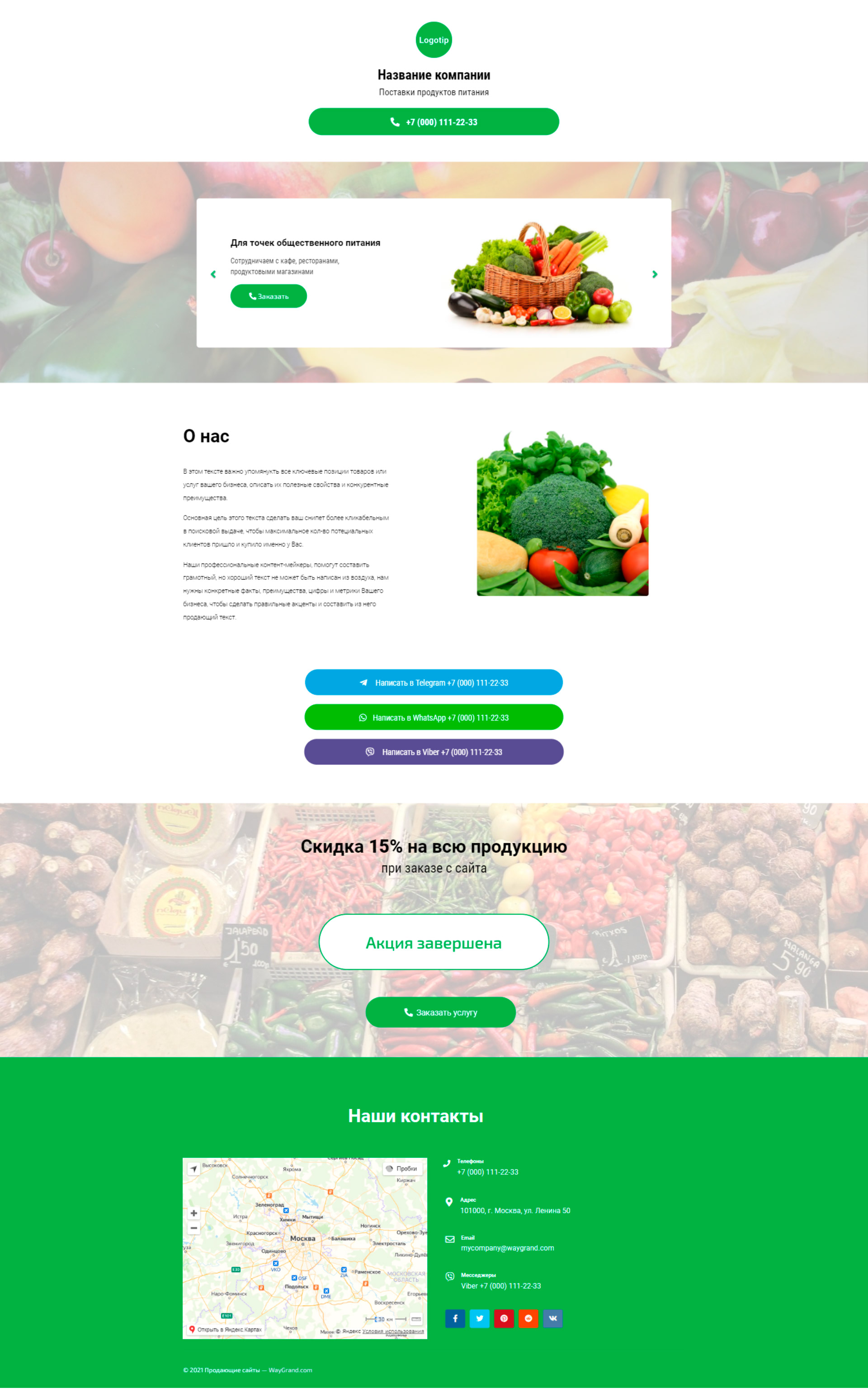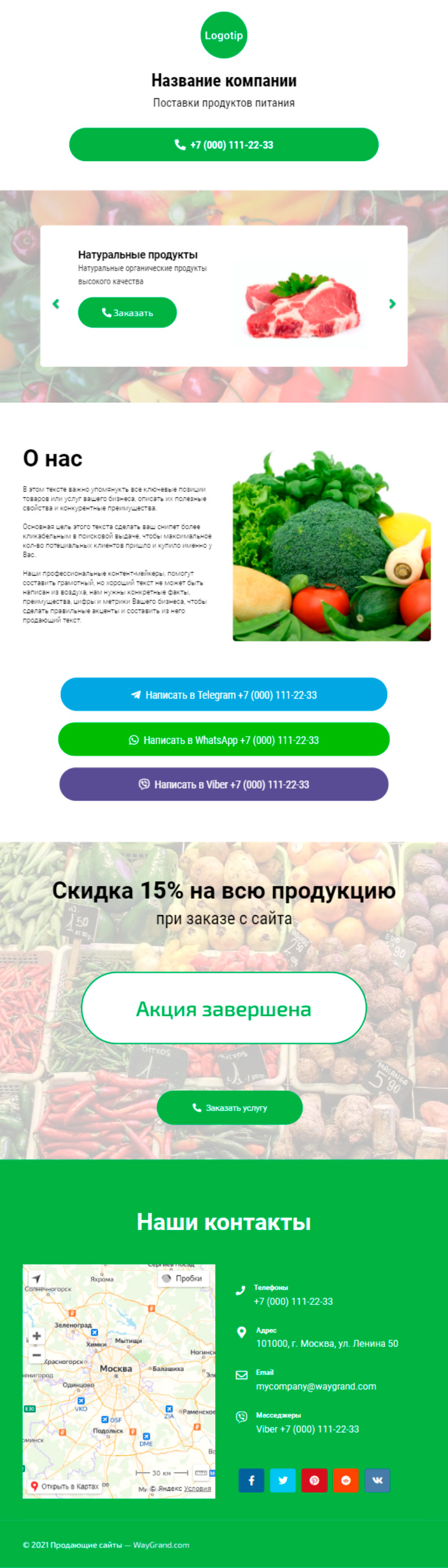 Закажите готовый продающий сайт визитка #1723101 в за 5-7 дня «под ключ»: свёрстан, отрисован и готов к рекламе. Тематика шаблона «Поставки продуктов питания».