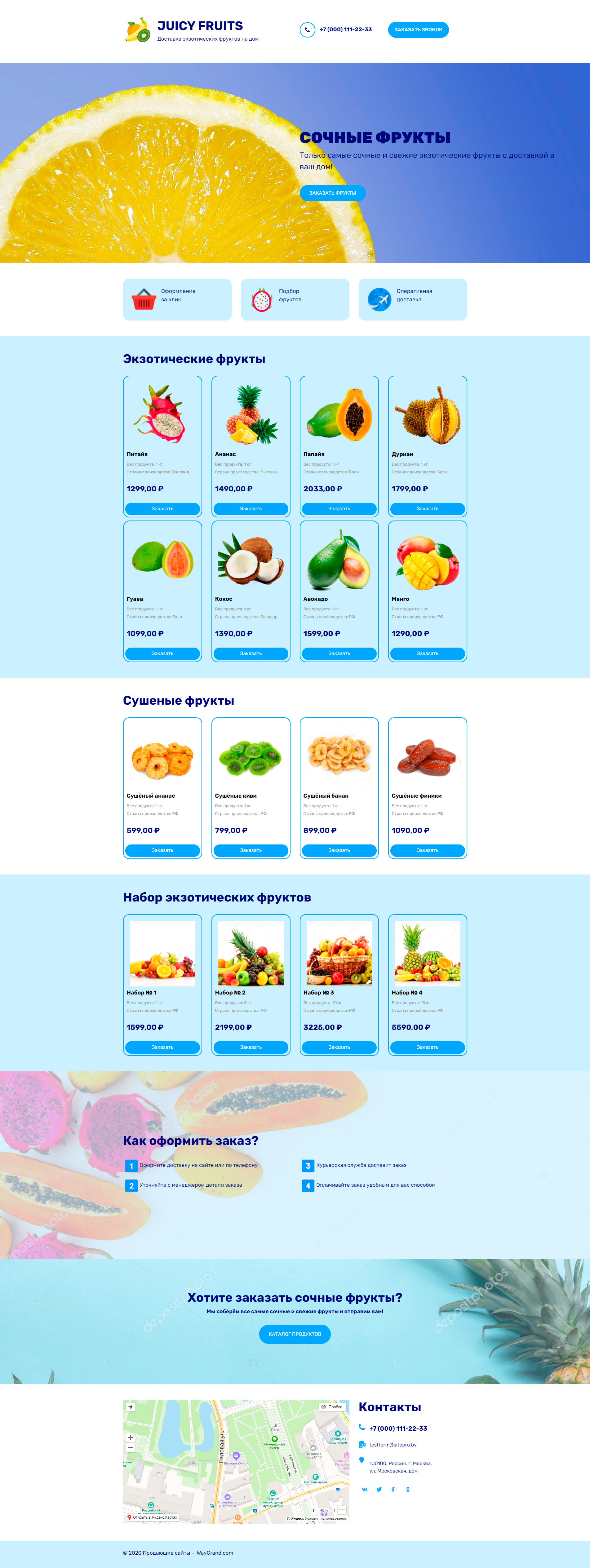 Закажите готовый продающий сайт лендинг #1723202 в за 1-3 дня «под ключ»: свёрстан, отрисован и готов к рекламе. Тематика шаблона «Доставка экзотических фруктов».