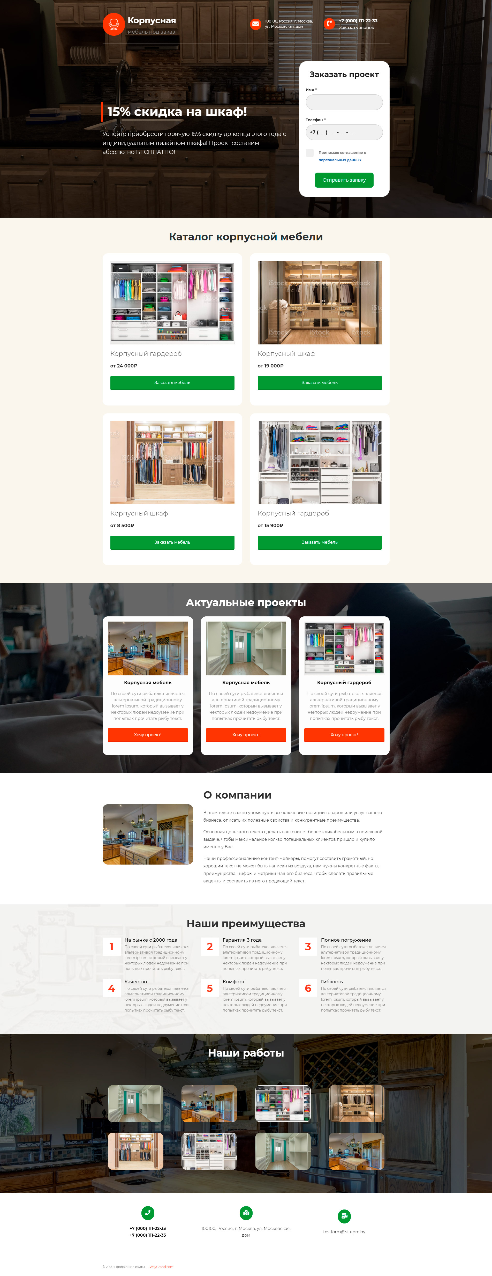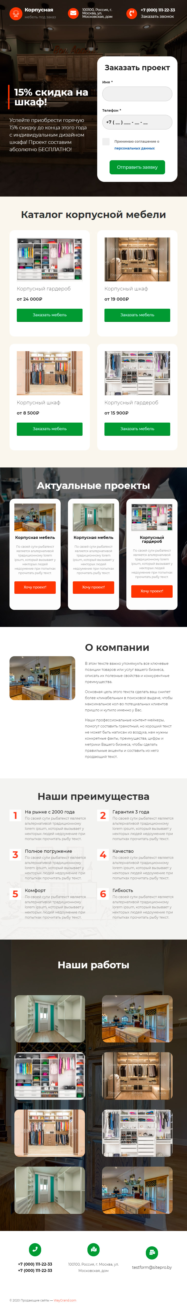 Закажите готовый продающий сайт лендинг #0915204 в за 1-3 дня «под ключ»: свёрстан, отрисован и готов к рекламе. Тематика шаблона «Корпусная мебель».