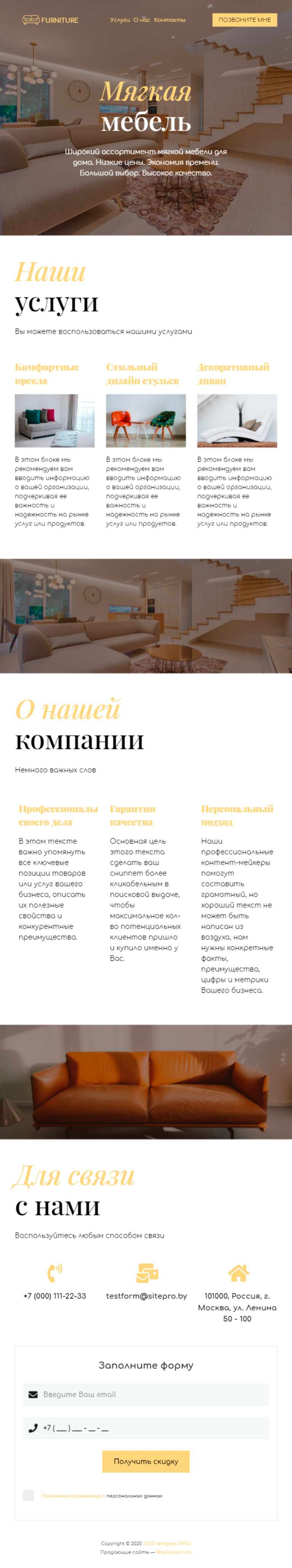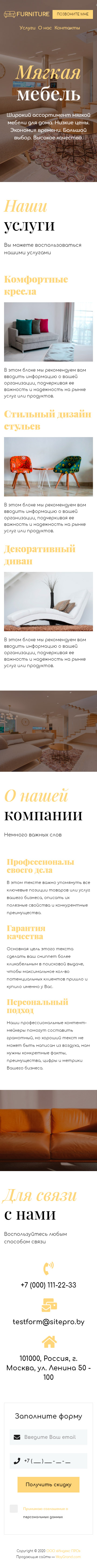 Закажите готовый продающий сайт визитка #0919101 в за 5-7 дня «под ключ»: свёрстан, отрисован и готов к рекламе. Тематика шаблона «Мягкая мебель».