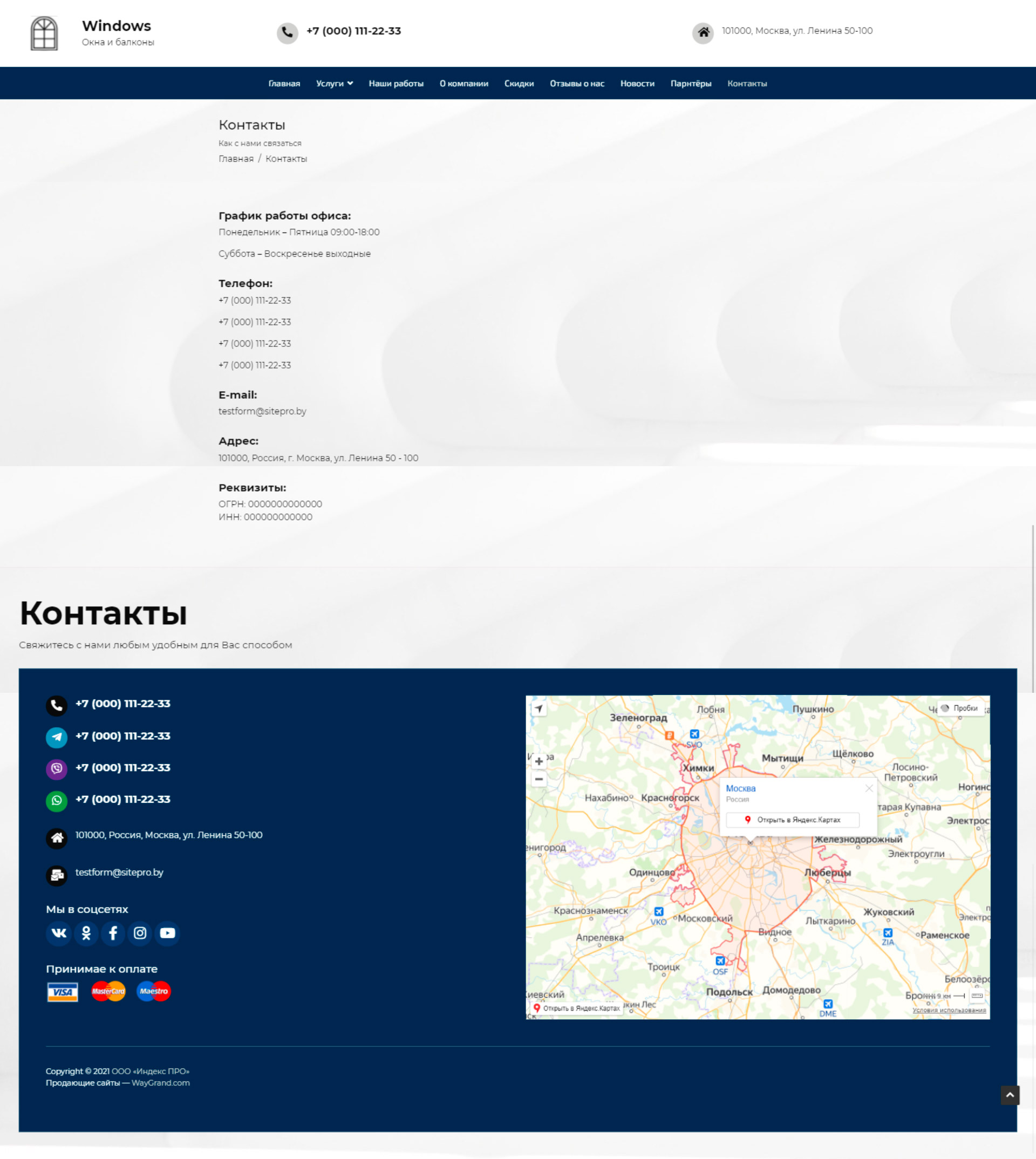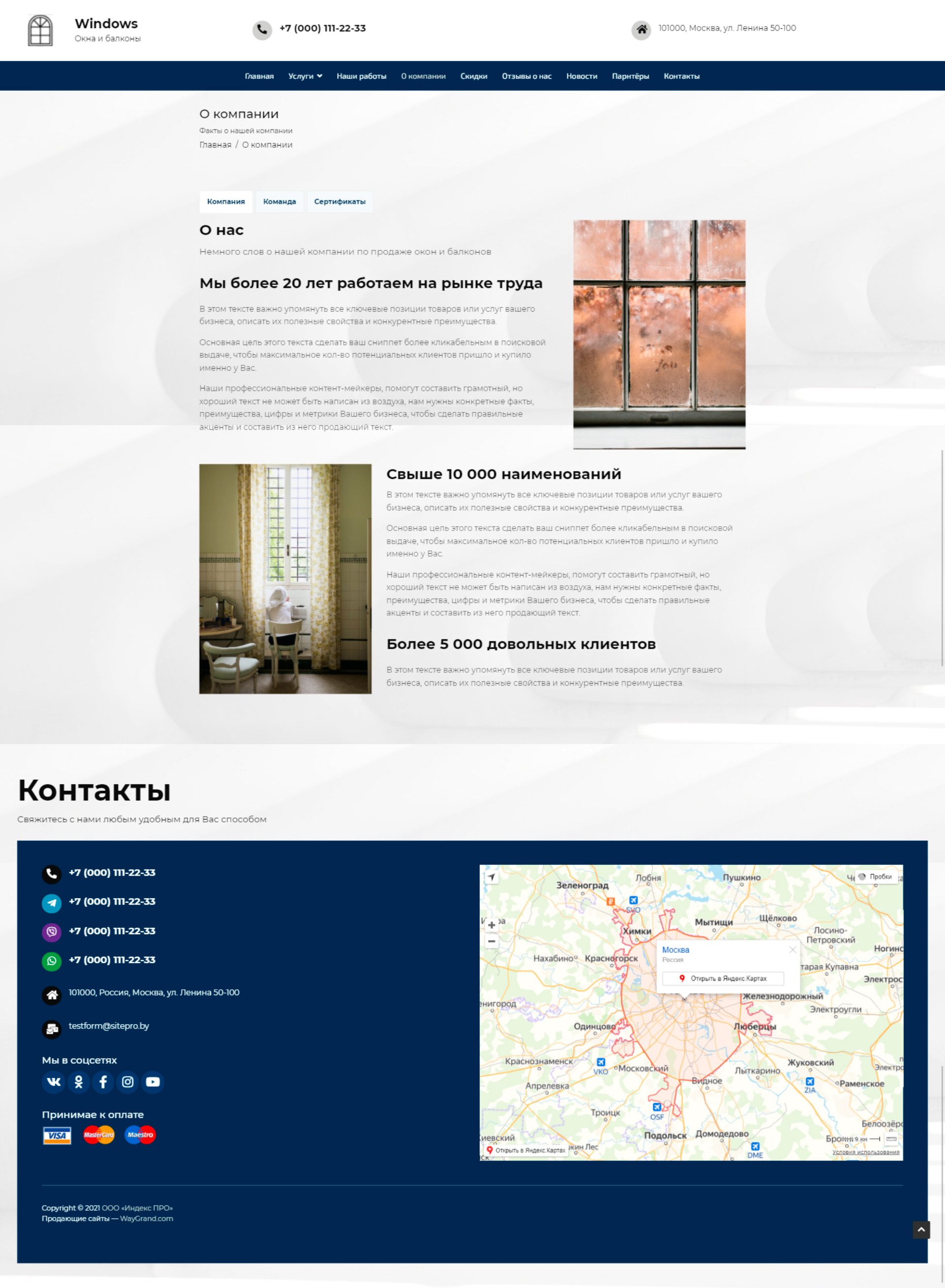 - Страница "Контакты"