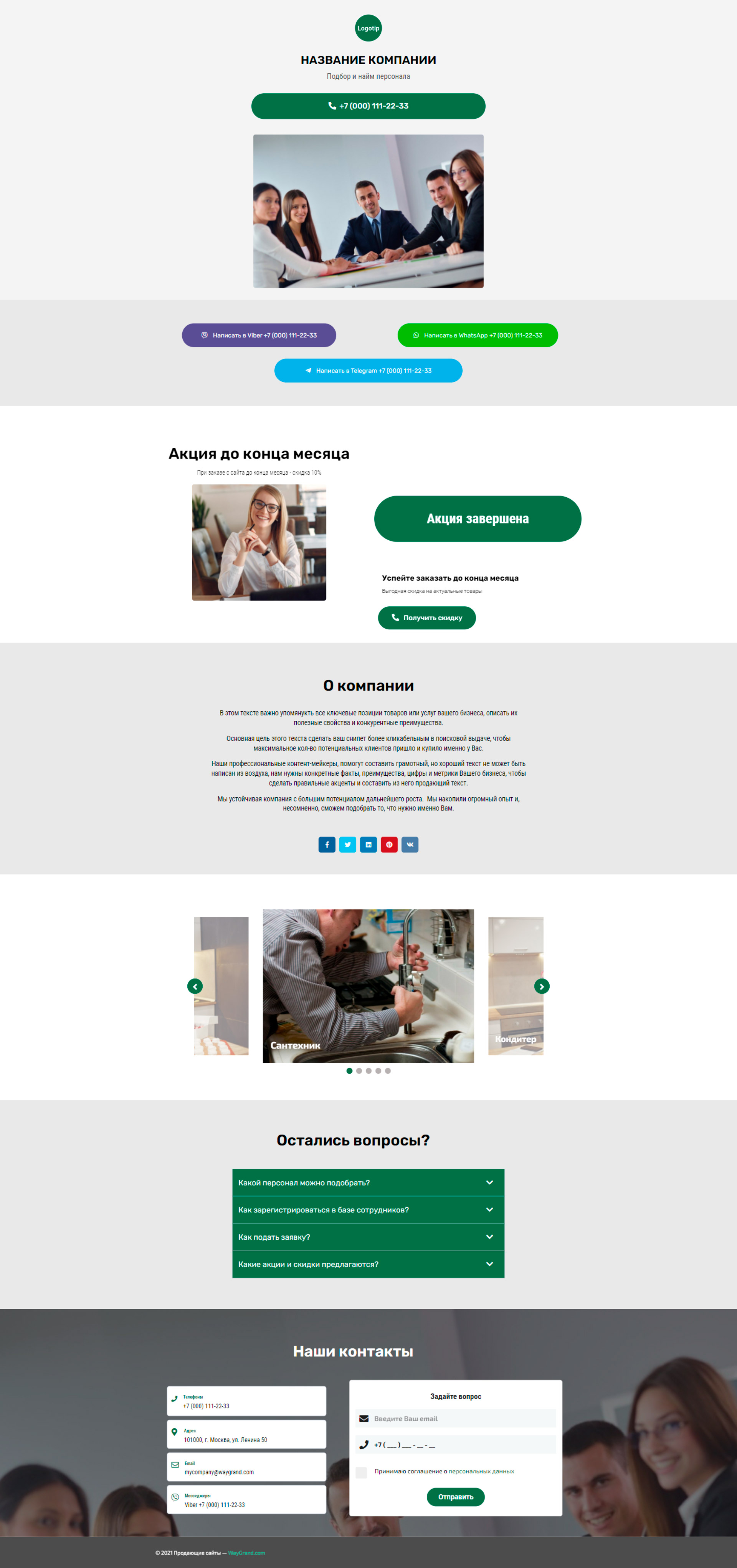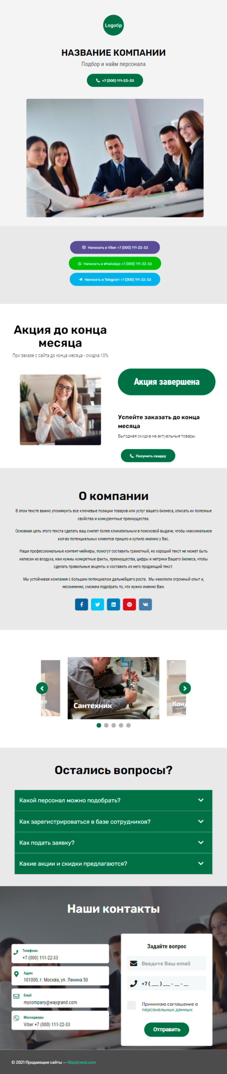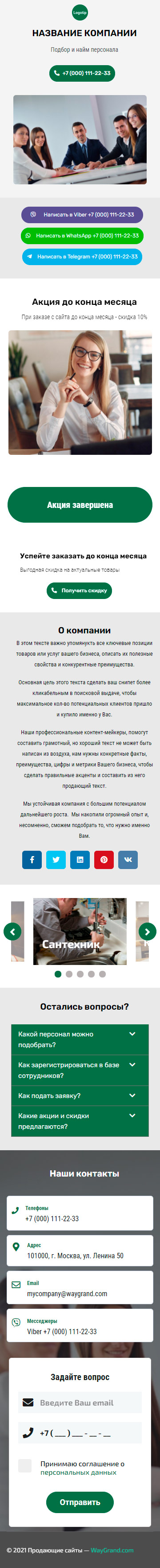 Закажите готовый продающий сайт визитка #1415101 в за 5-7 дня «под ключ»: свёрстан, отрисован и готов к рекламе. Тематика шаблона «Подбор и найм персонала».