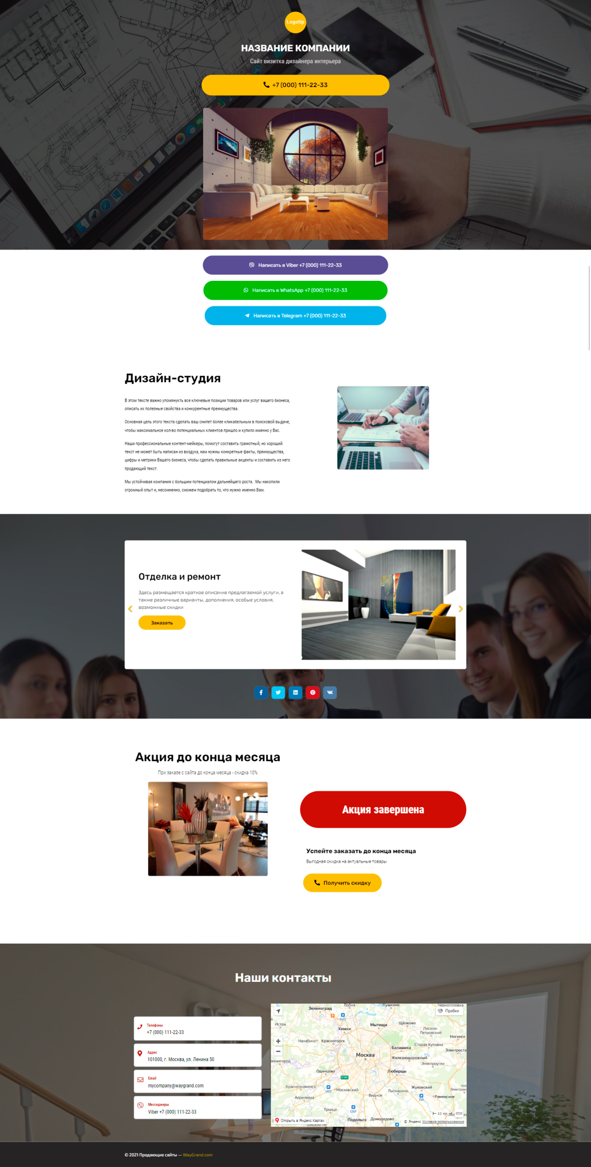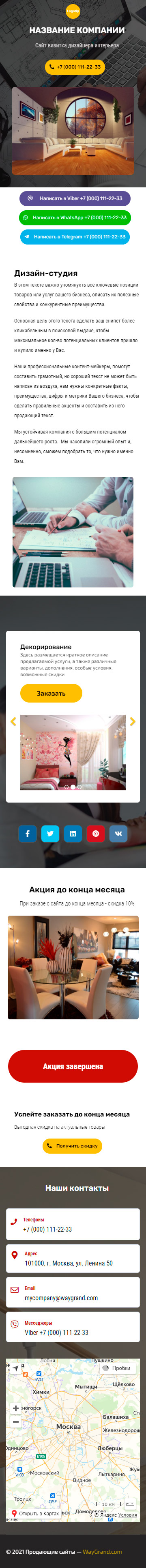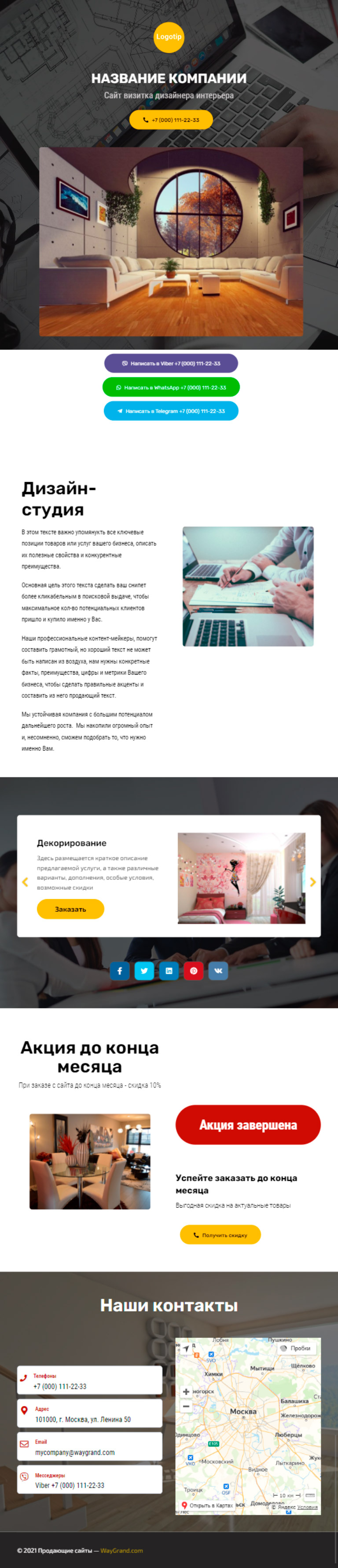 Закажите готовый продающий сайт визитка #2124101 в за 5-7 дня «под ключ»: свёрстан, отрисован и готов к рекламе. Тематика шаблона «Дизайн интерьеров».