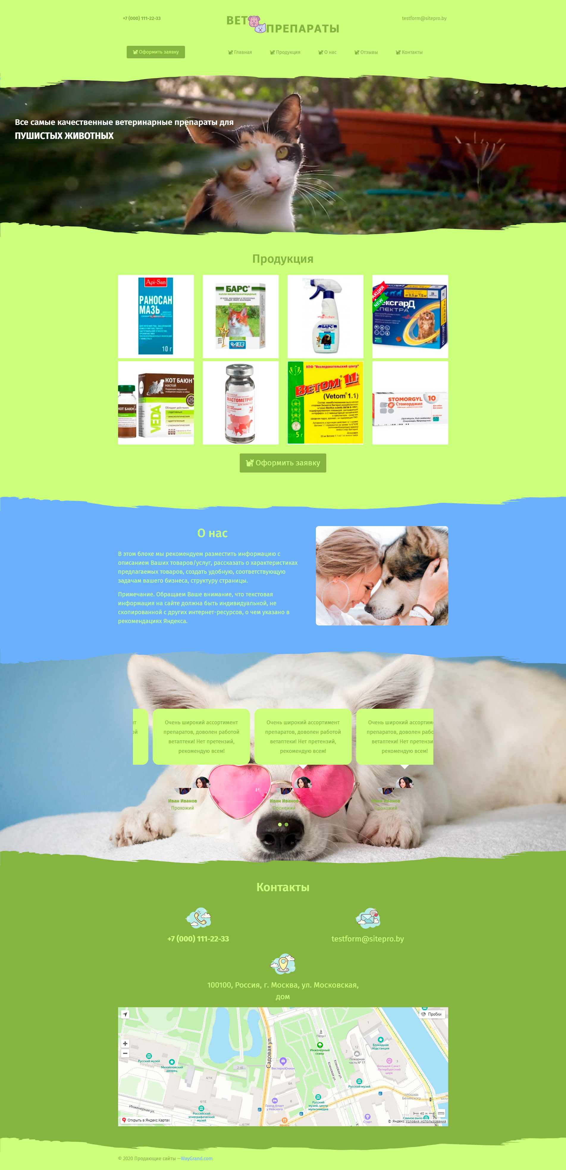 Закажите готовый продающий сайт лендинг #2305202 в за 1-3 дня «под ключ»: свёрстан, отрисован и готов к рекламе. Тематика шаблона «Ветпрепараты».