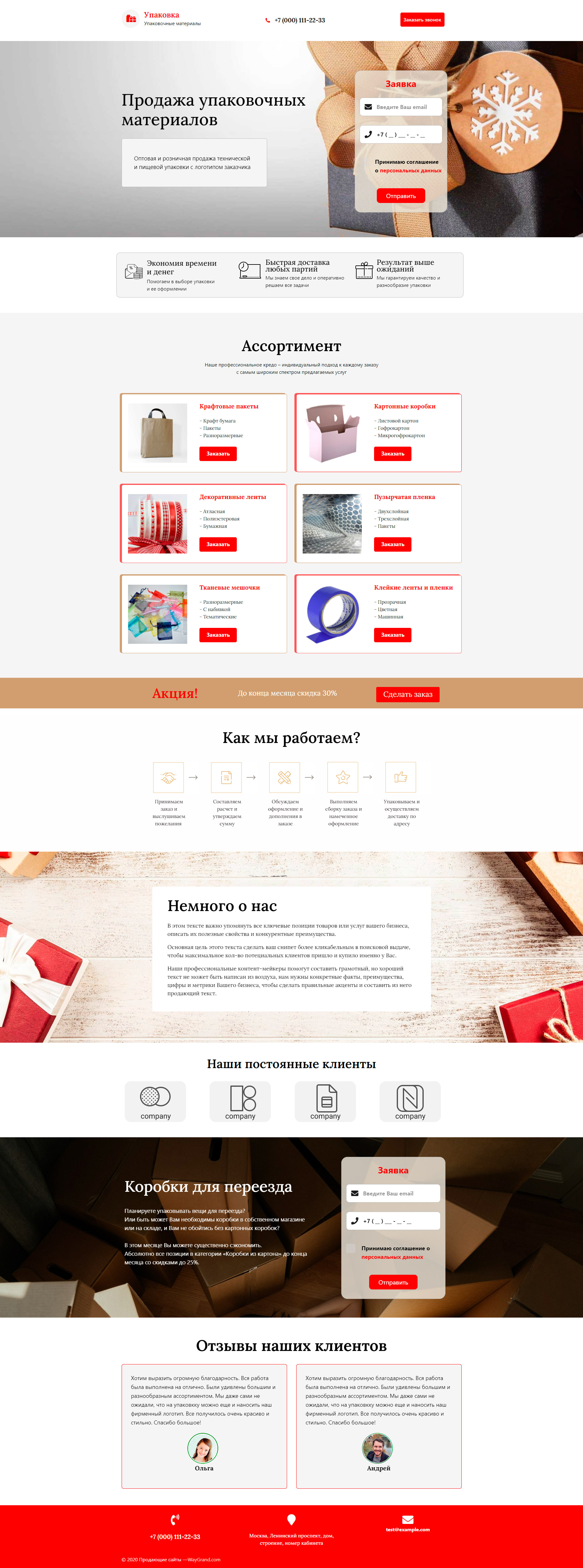 Закажите готовый продающий сайт лендинг #2627201 в за 1-3 дня «под ключ»: свёрстан, отрисован и готов к рекламе. Тематика шаблона «Продажа упаковочных материалов».