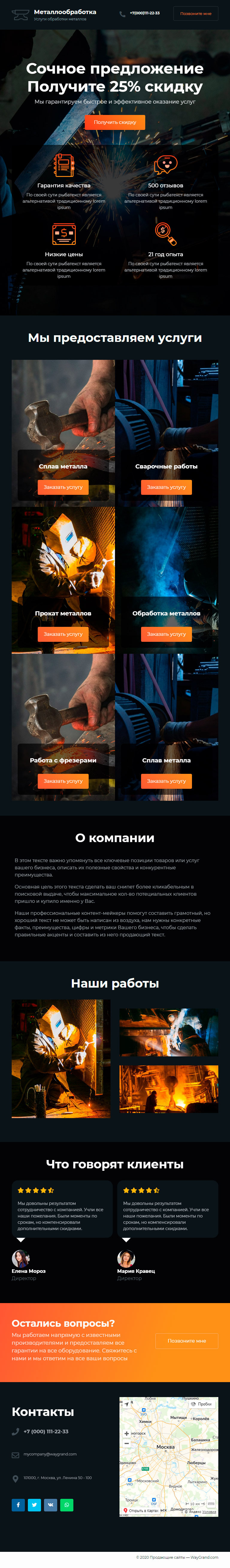 Закажите готовый продающий сайт лендинг #1209201 в за 1-3 дня «под ключ»: свёрстан, отрисован и готов к рекламе. Тематика шаблона «Металлообработка».