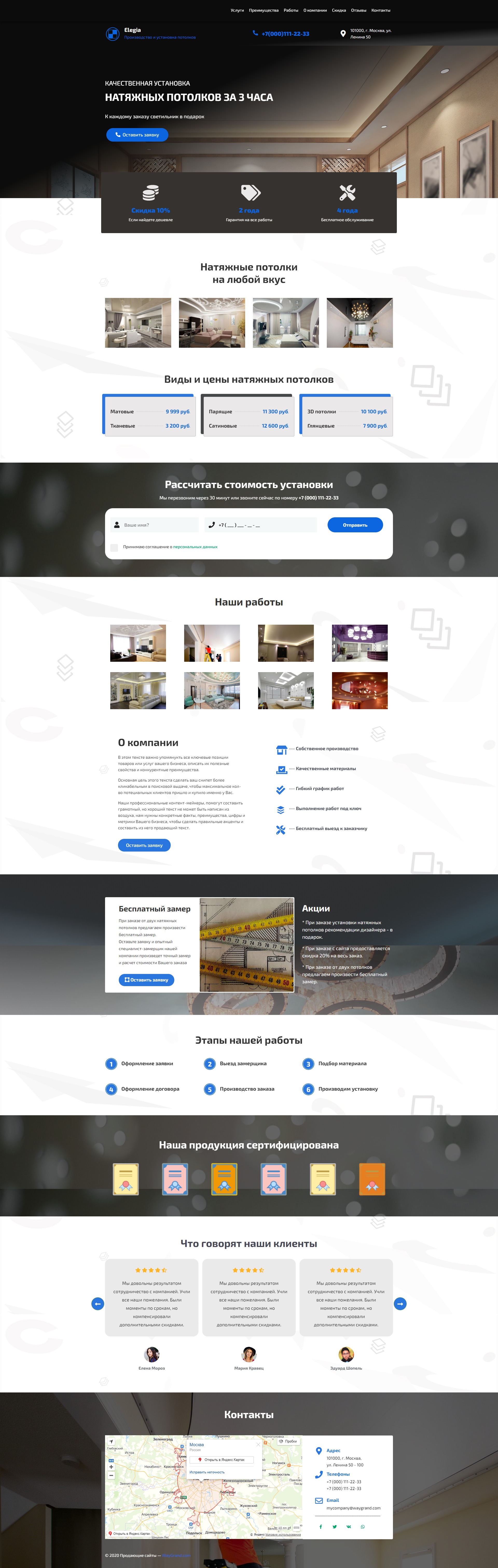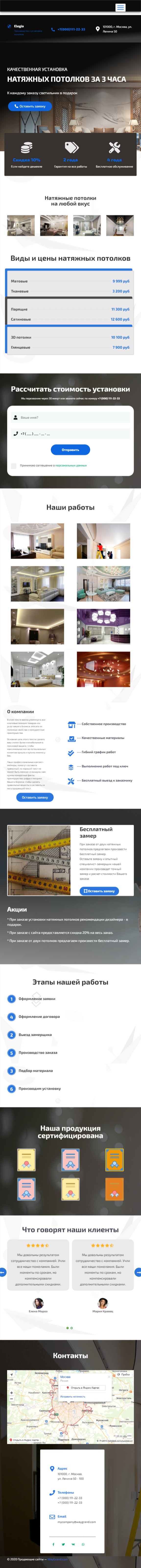 Закажите готовый продающий сайт лендинг #2029202 в за 1-3 дня «под ключ»: свёрстан, отрисован и готов к рекламе. Тематика шаблона «Натяжные потолки».