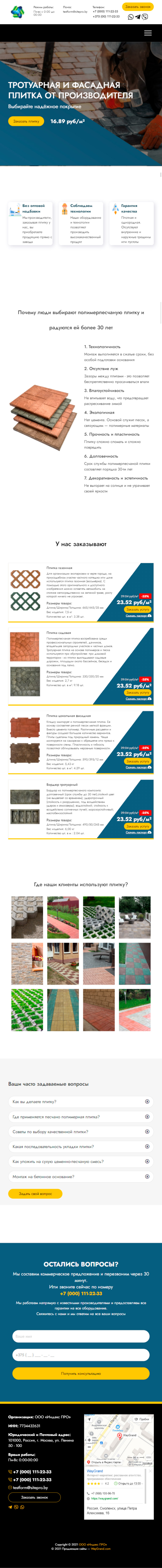 Закажите готовый продающий сайт лендинг #2055202 в за 1-3 дня «под ключ»: свёрстан, отрисован и готов к рекламе. Тематика шаблона «Тротуарная плитка».