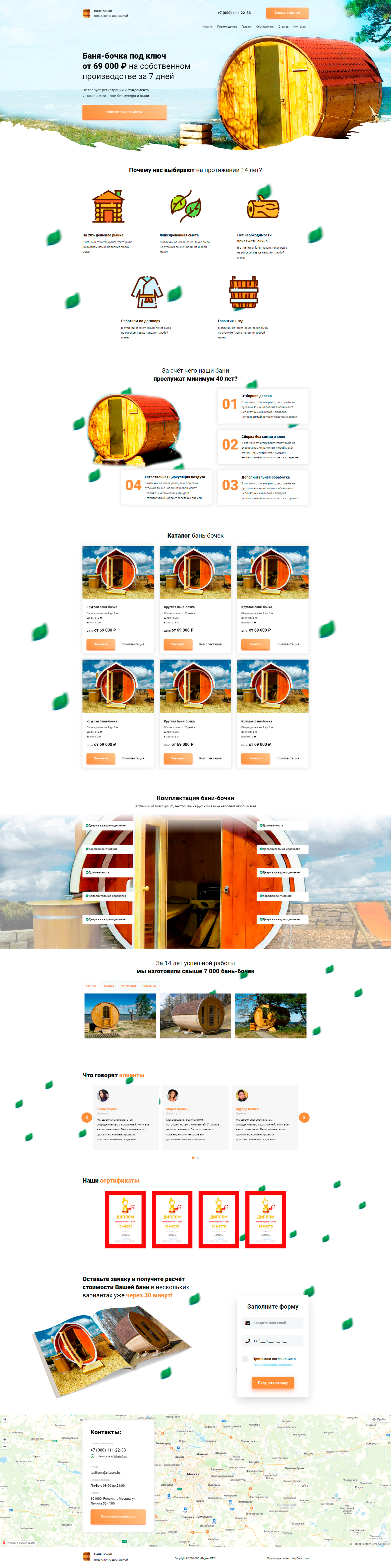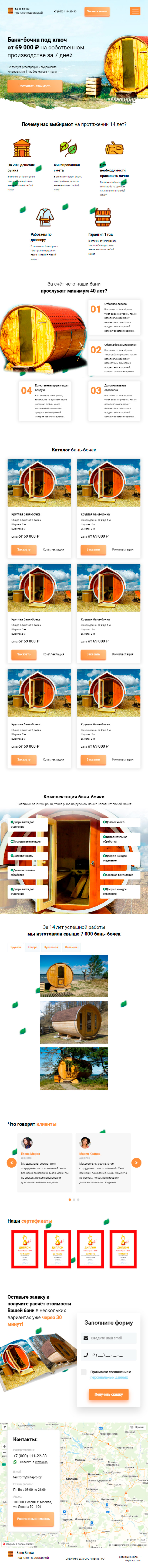 Закажите готовый продающий сайт лендинг #2172204 в за 1-3 дня «под ключ»: свёрстан, отрисован и готов к рекламе. Тематика шаблона «Баня-бочки».