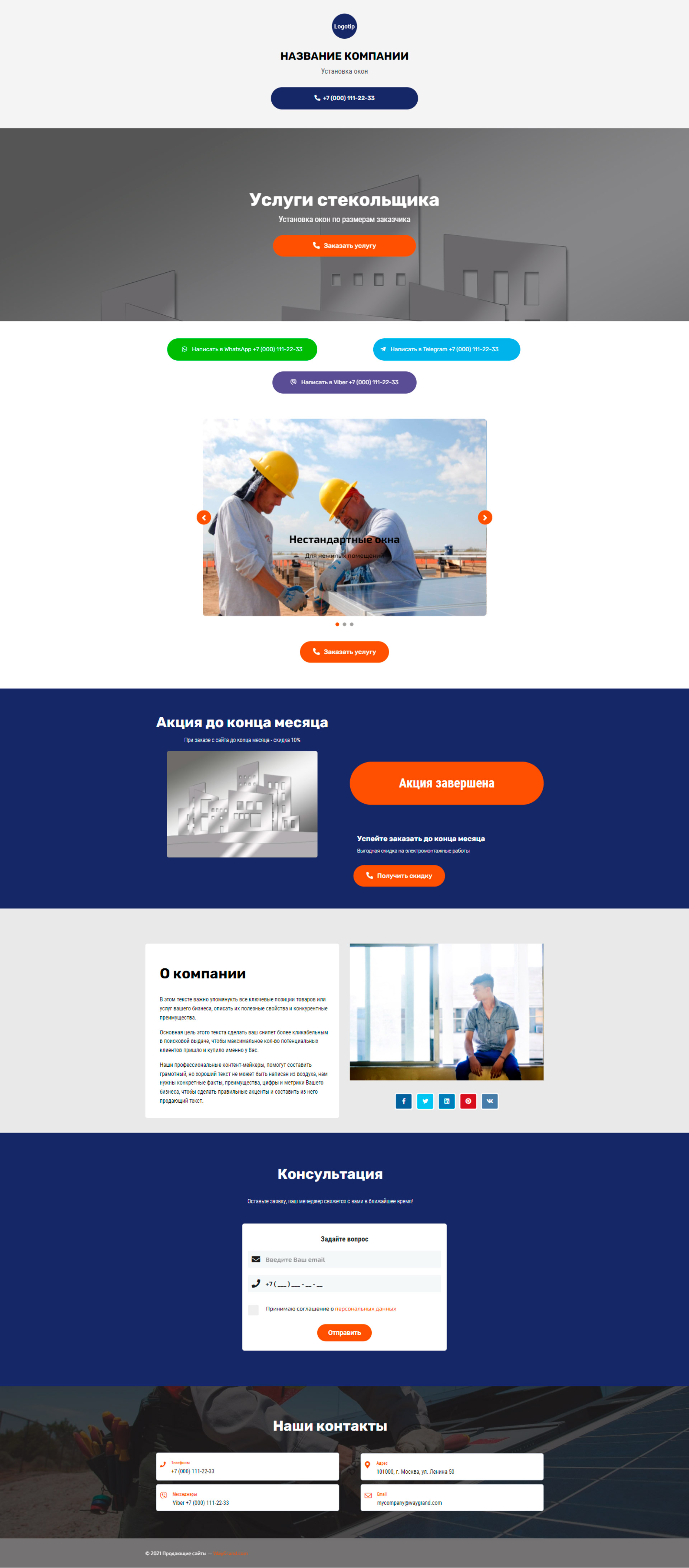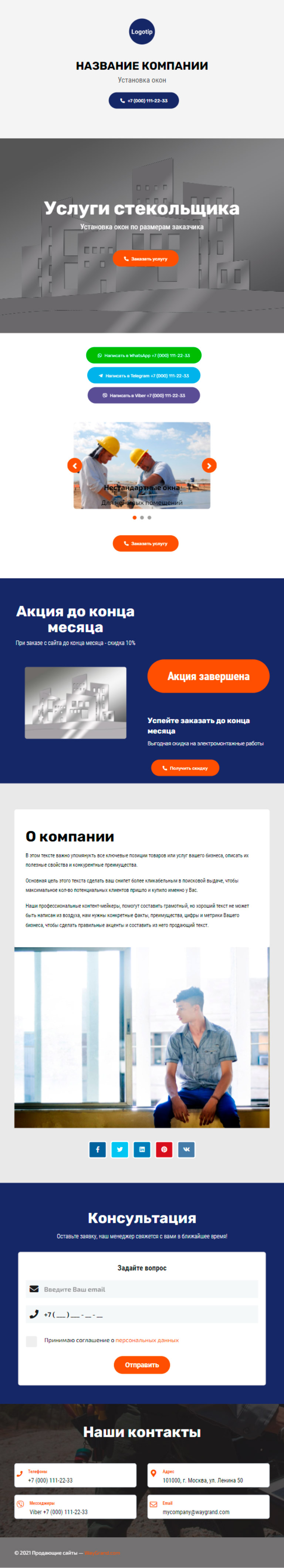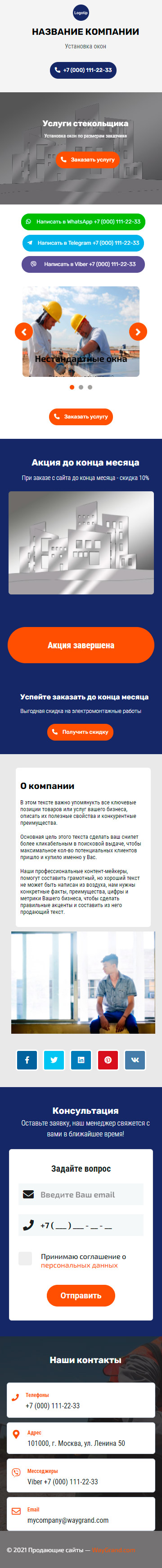 Закажите готовый продающий сайт визитка #2138101 в за 5-7 дня «под ключ»: свёрстан, отрисован и готов к рекламе. Тематика шаблона «Установка окон».