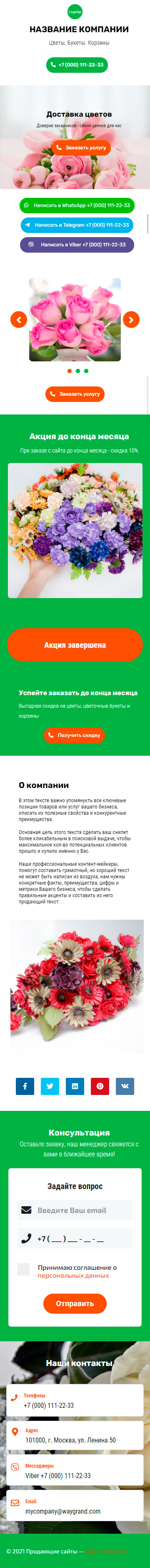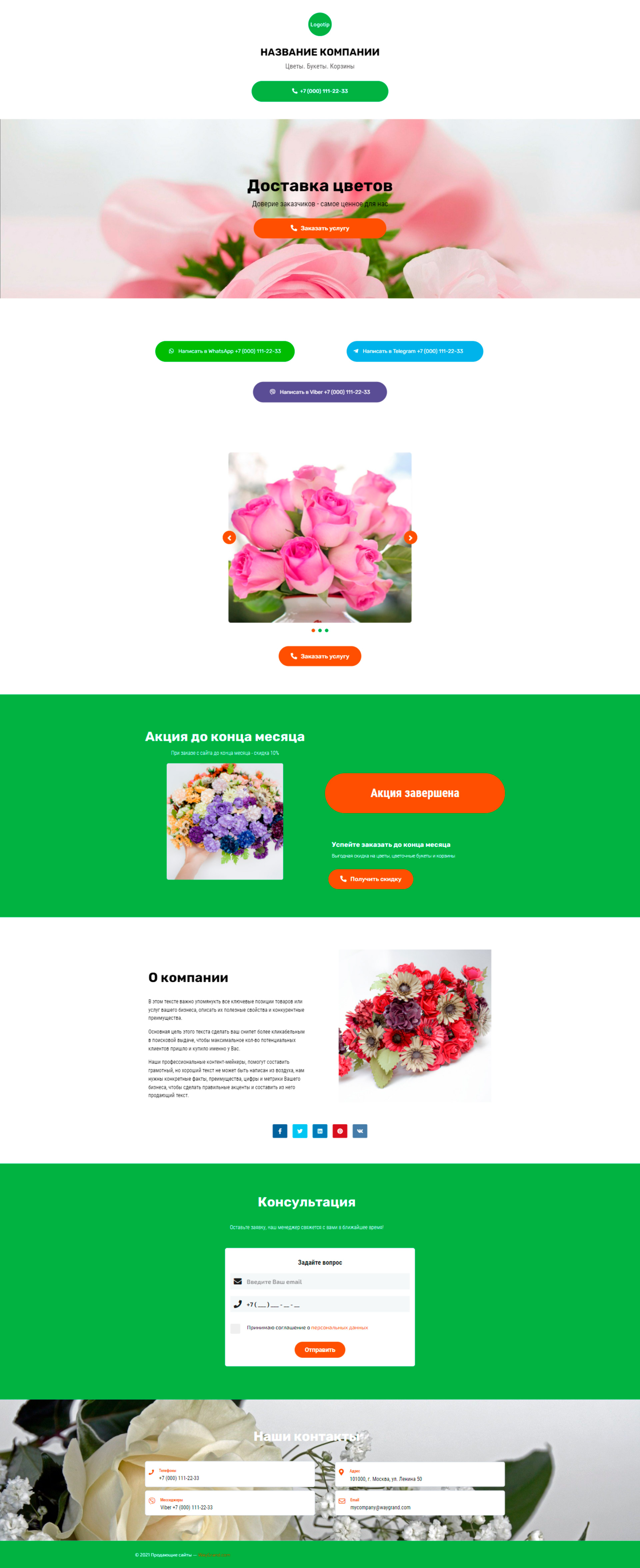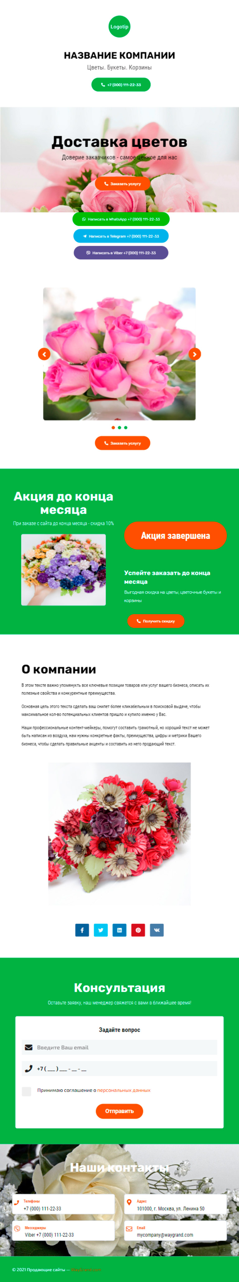 Закажите готовый продающий сайт визитка #2404101 в за 5-7 дня «под ключ»: свёрстан, отрисован и готов к рекламе. Тематика шаблона «Доставка цветов».