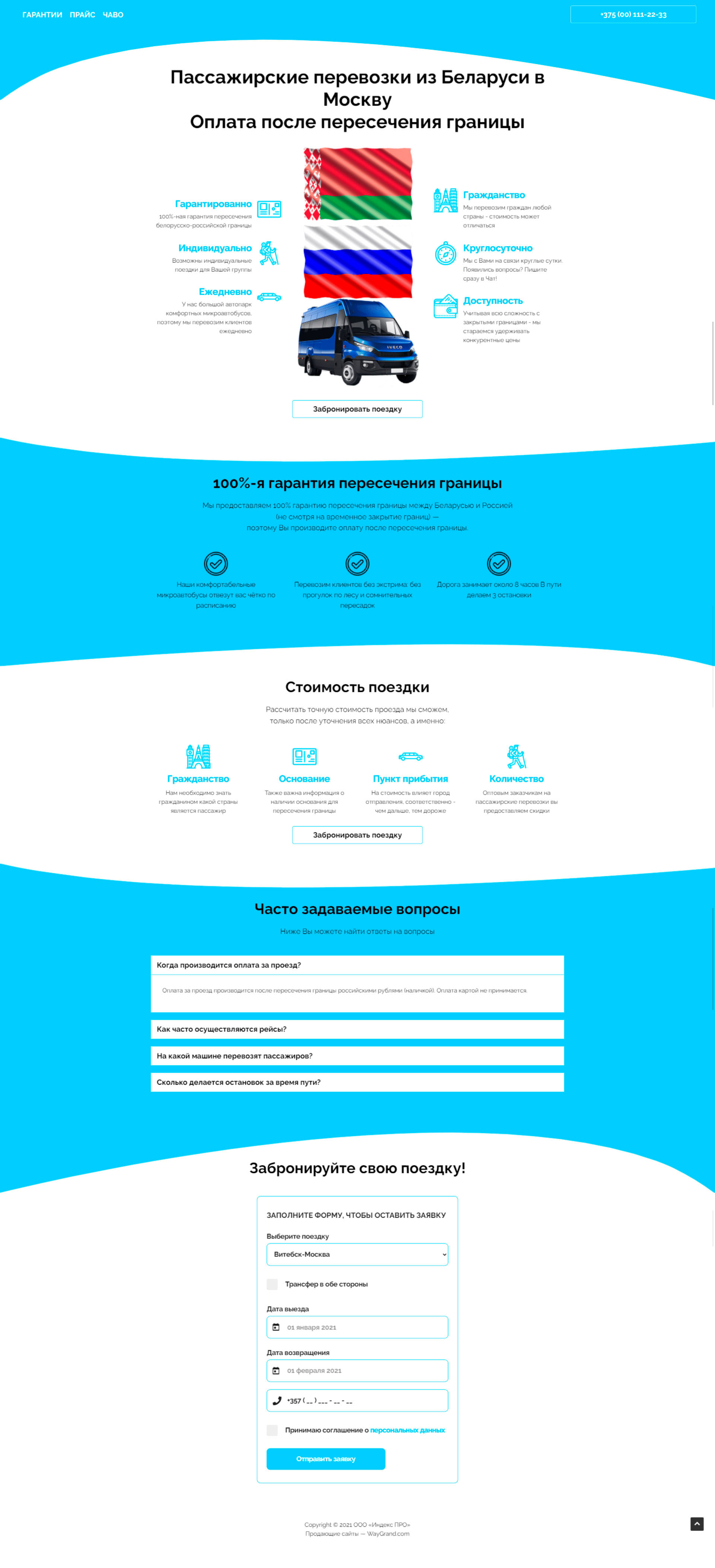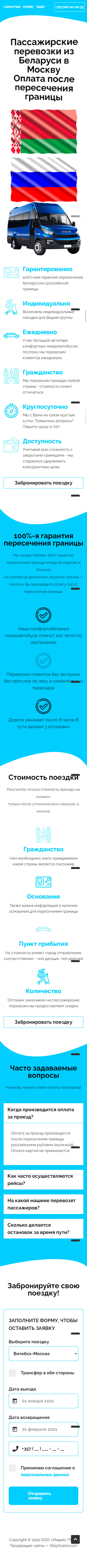 Закажите готовый продающий сайт лендинг #2528204 в за 1-3 дня «под ключ»: свёрстан, отрисован и готов к рекламе. Тематика шаблона «Пассажирские перевозки из Беларуси в Москву».