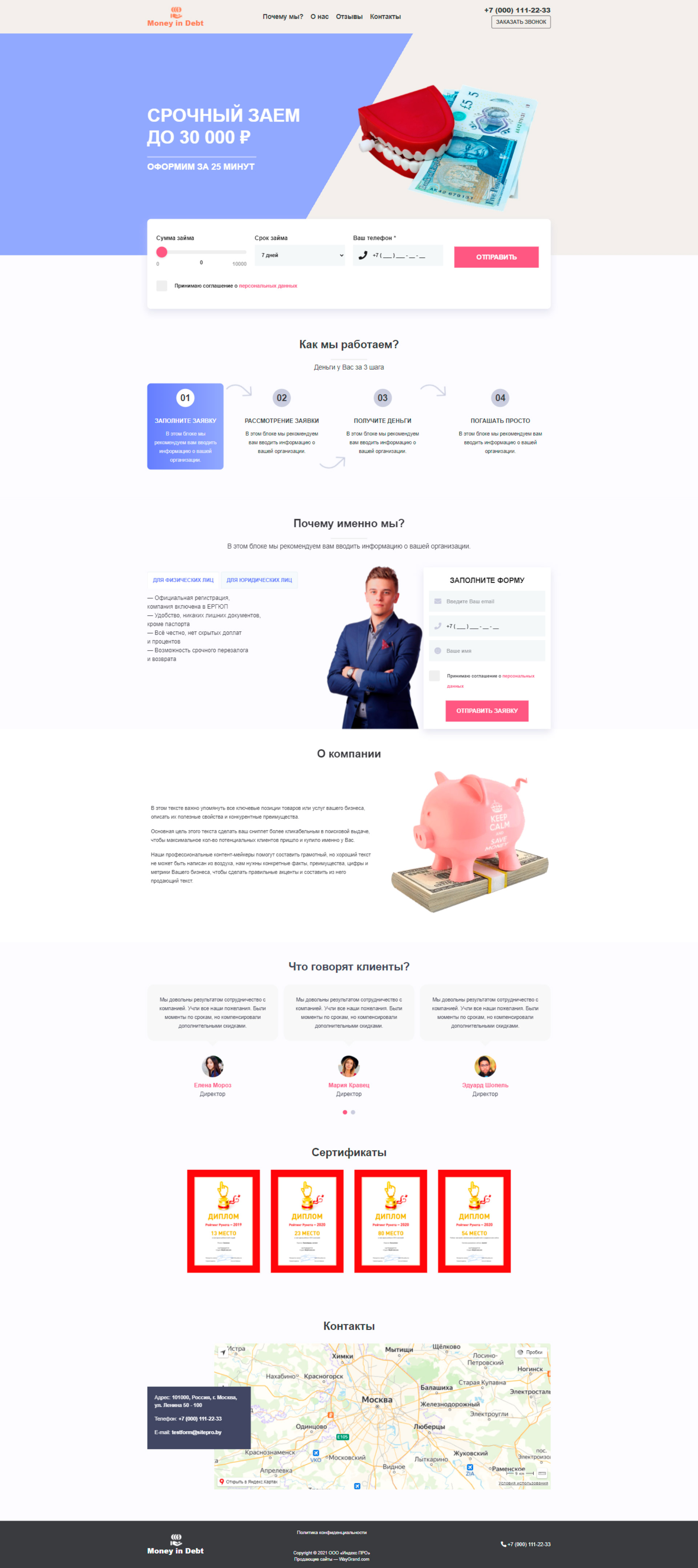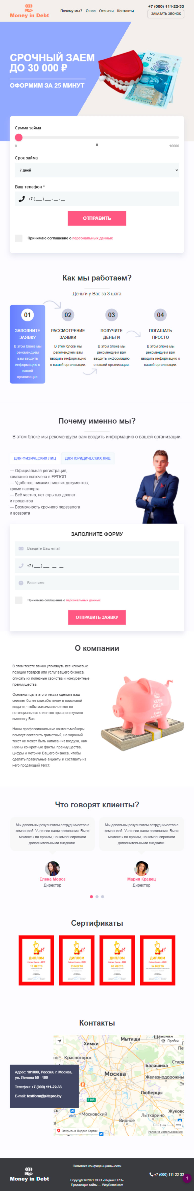 Закажите готовый продающий сайт лендинг #2825202 в за 1-3 дня «под ключ»: свёрстан, отрисован и готов к рекламе. Тематика шаблона «Деньги в долг».