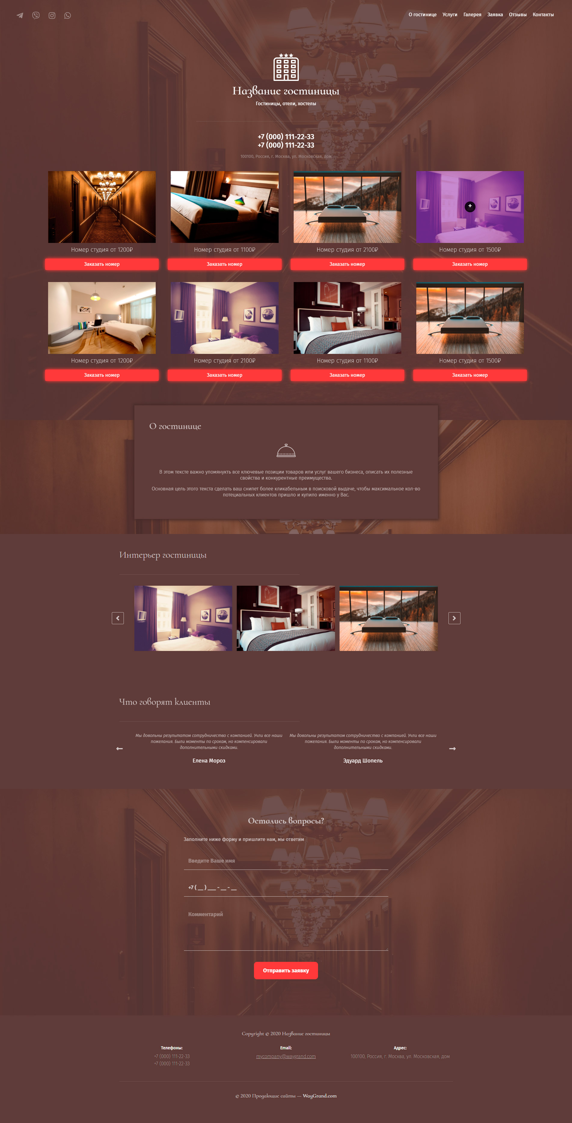 Закажите готовый продающий сайт лендинг #1905202 в за 1-3 дня «под ключ»: свёрстан, отрисован и готов к рекламе. Тематика шаблона «Гостиница, повышенный комфорт».