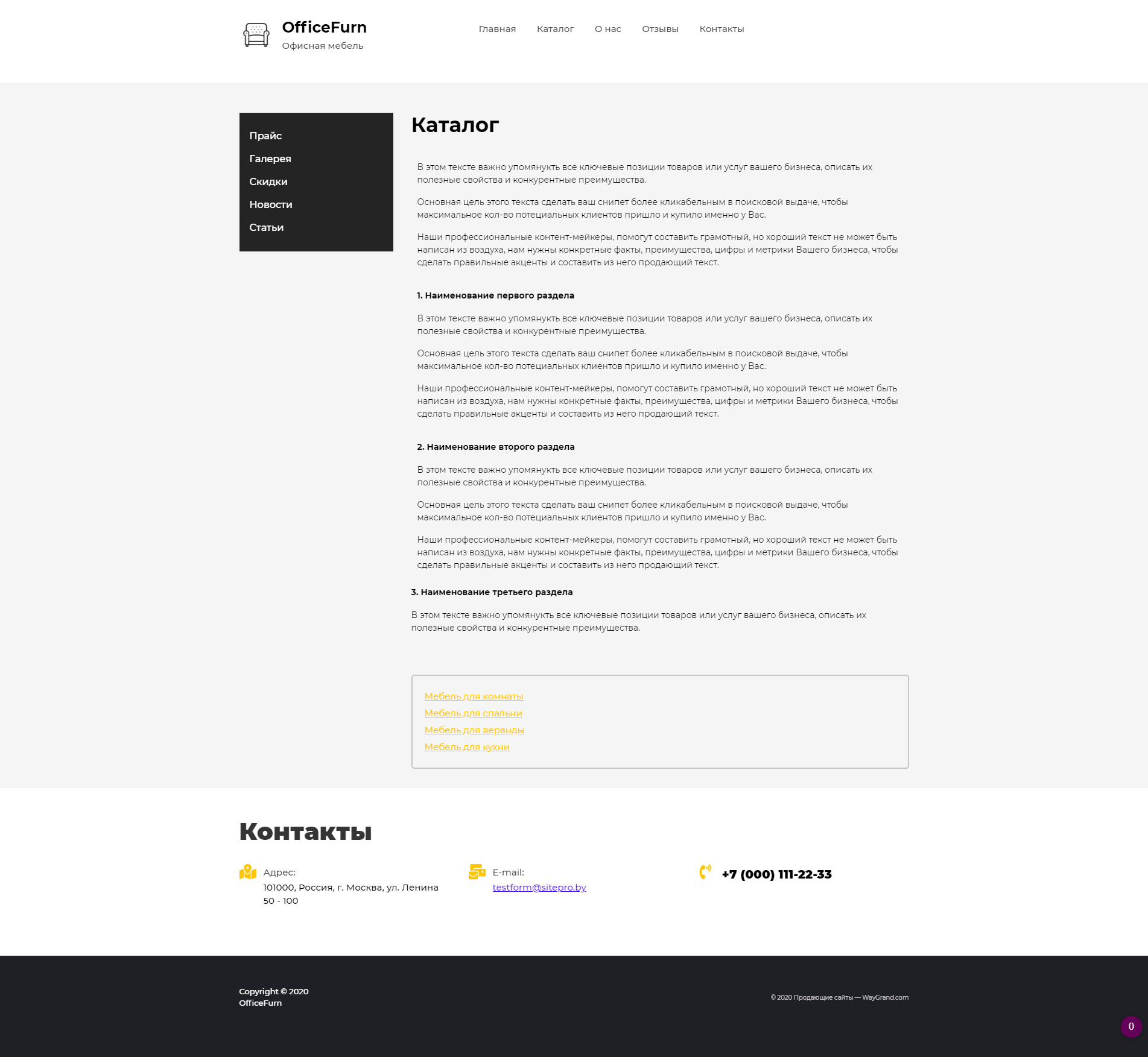 Закажите готовый продающий сайт визитка #0921301 в за 5-7 дня «под ключ»: свёрстан, отрисован и готов к рекламе. Тематика шаблона «Офисная мебель».