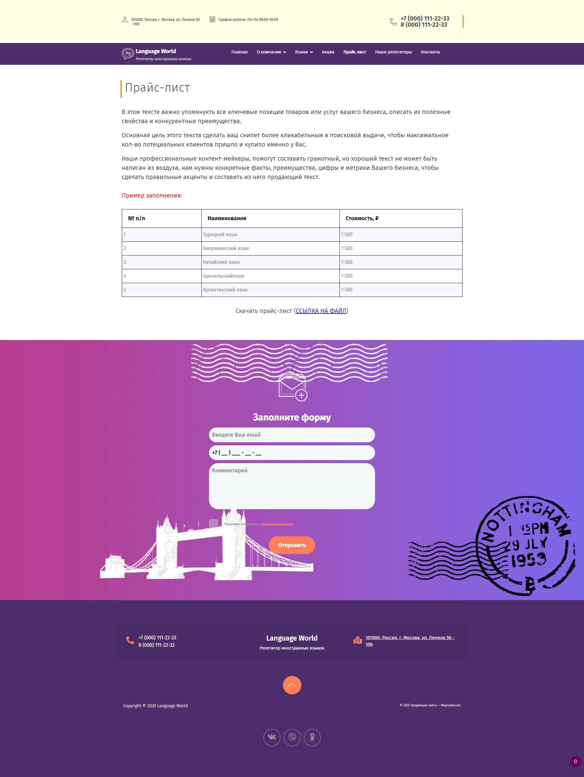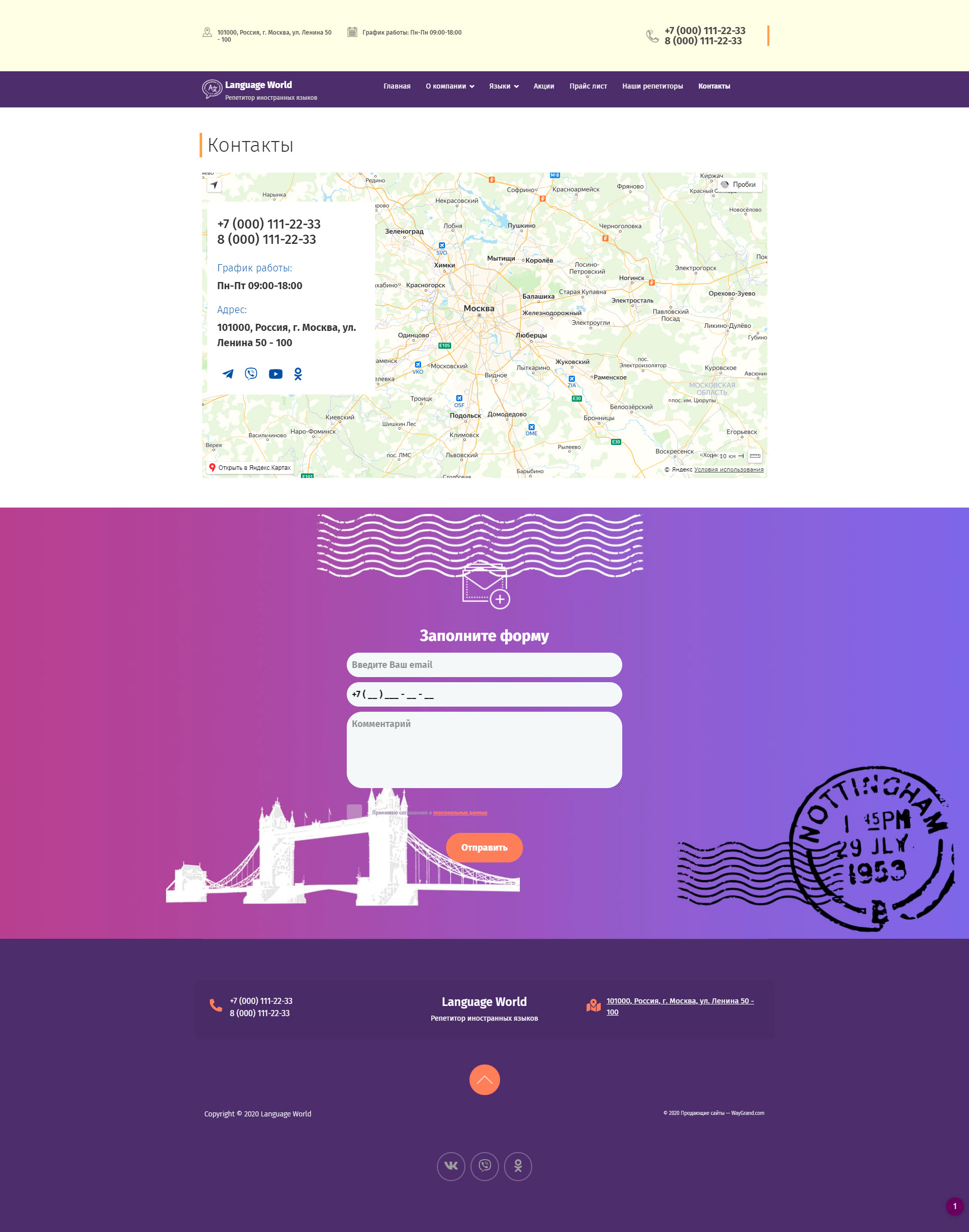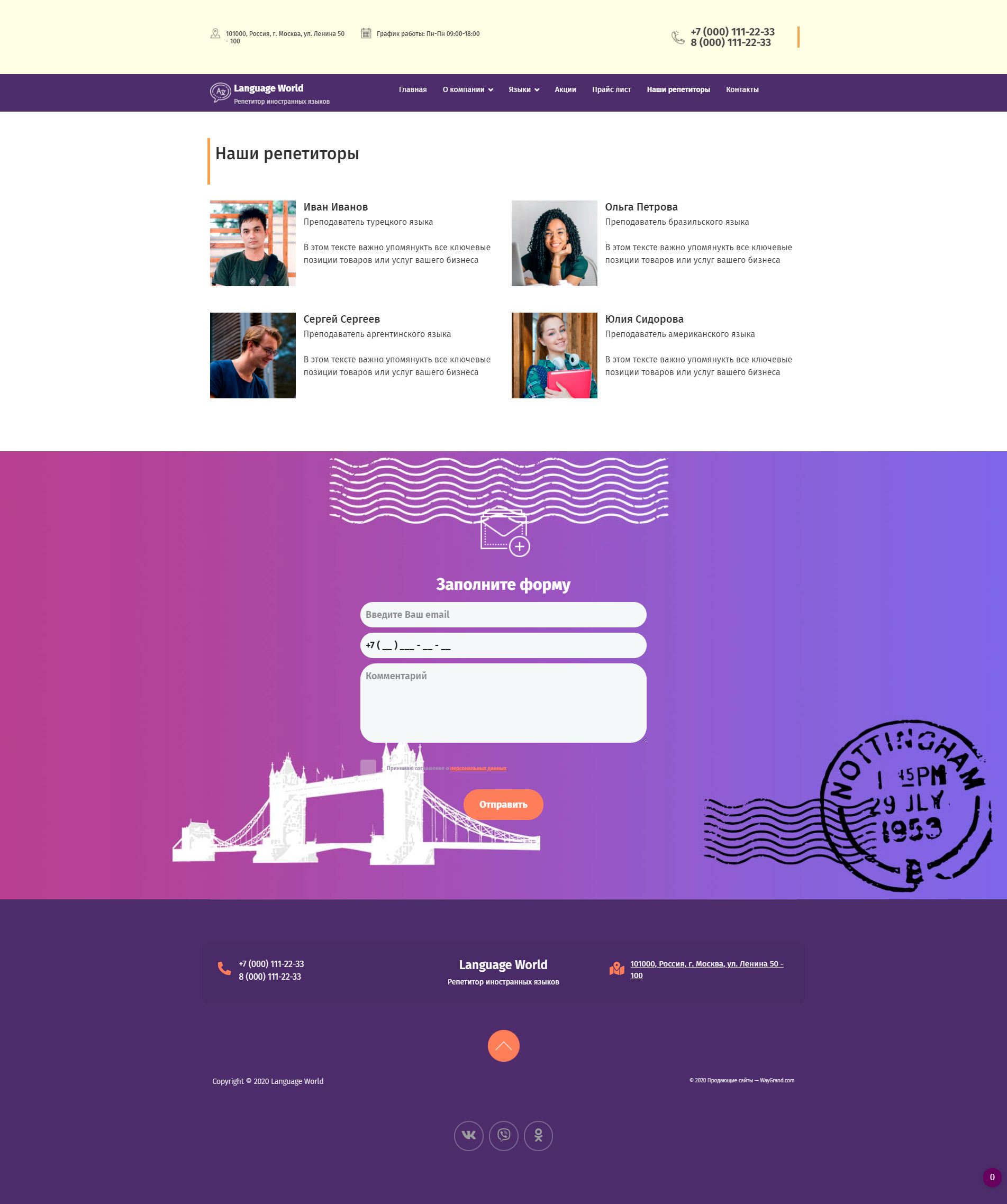 Закажите готовый продающий сайт визитка #1448301 в за 5-7 дня «под ключ»: свёрстан, отрисован и готов к рекламе. Тематика шаблона «Курсы иностранных языков».