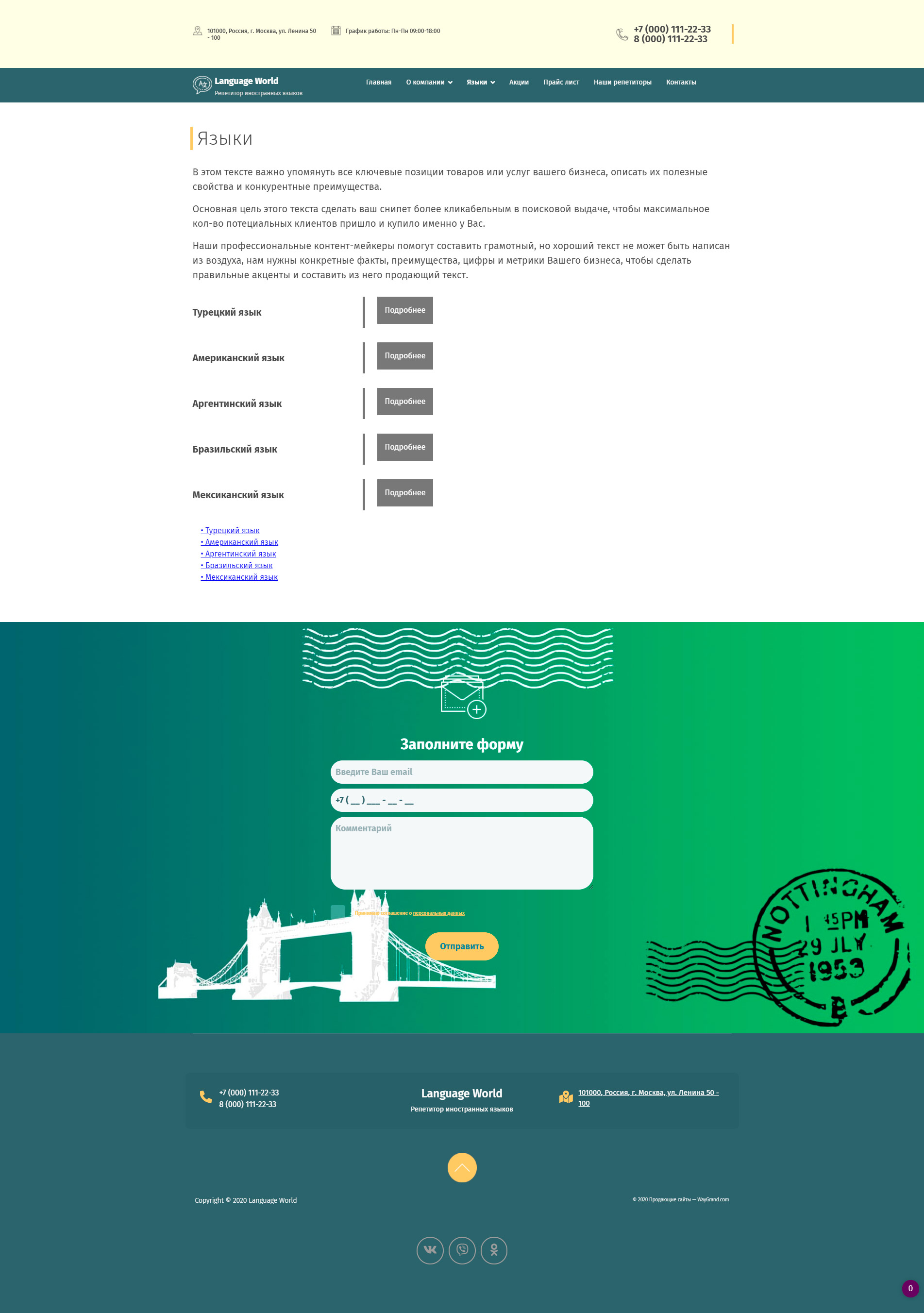 - Блок "Запишитесь на курсы иностранных языков"