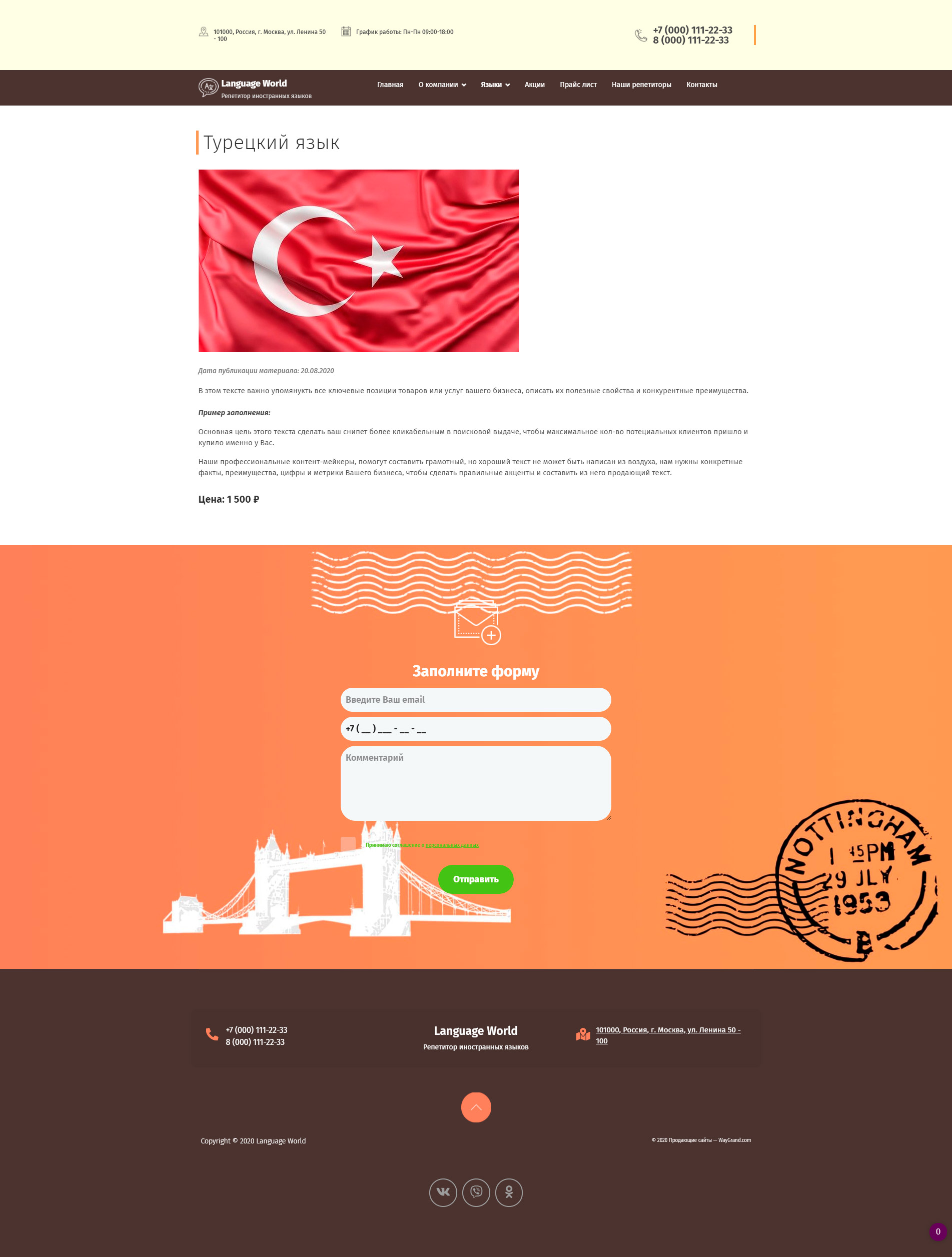 Закажите готовый продающий сайт визитка #1448303 в за 5-7 дня «под ключ»: свёрстан, отрисован и готов к рекламе. Тематика шаблона «Курсы иностранных языков».
