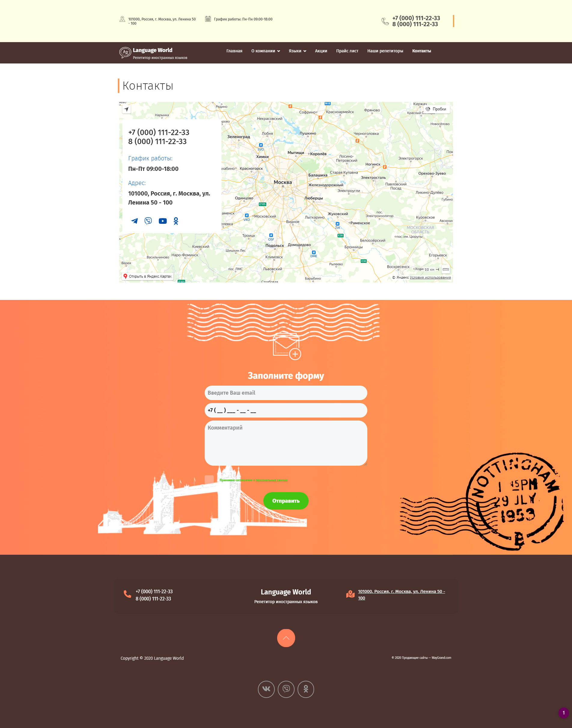 - Страница "Контакты"