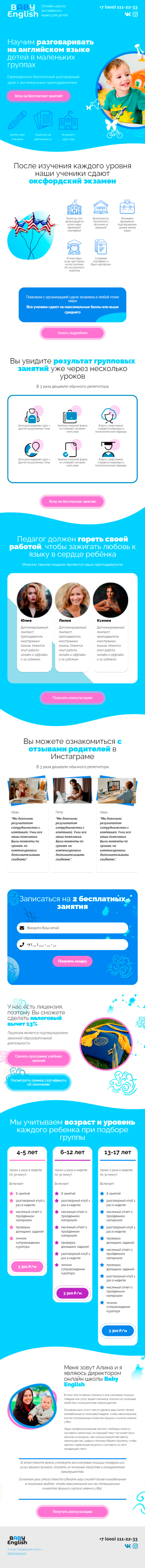 Закажите готовый продающий сайт лендинг #3172201 в за 1-3 дня «под ключ»: свёрстан, отрисован и готов к рекламе. Тематика шаблона «Английский для детей».
