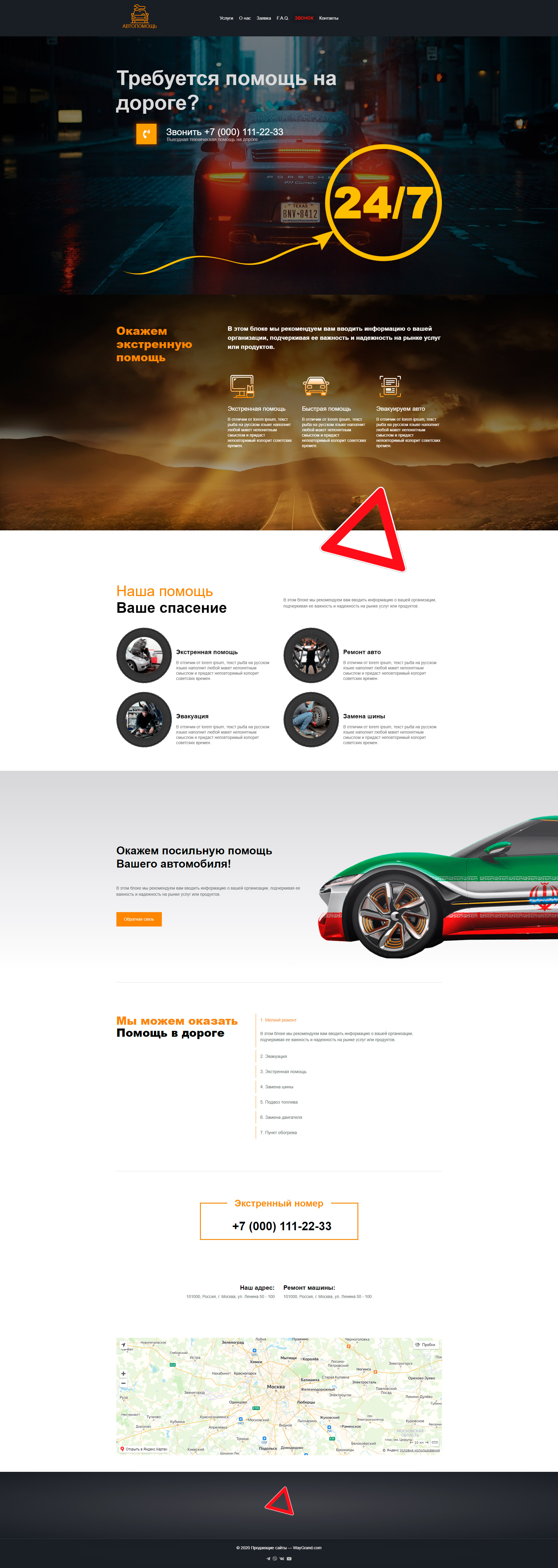 Готовый продающий сайт лендинг #0218201 в за 1-3 дня «под ключ» по доступным ценам на Waygrand: свёрстан, отрисован и готов к рекламе. Тематика шаблона «Выездная техническая помощь».
