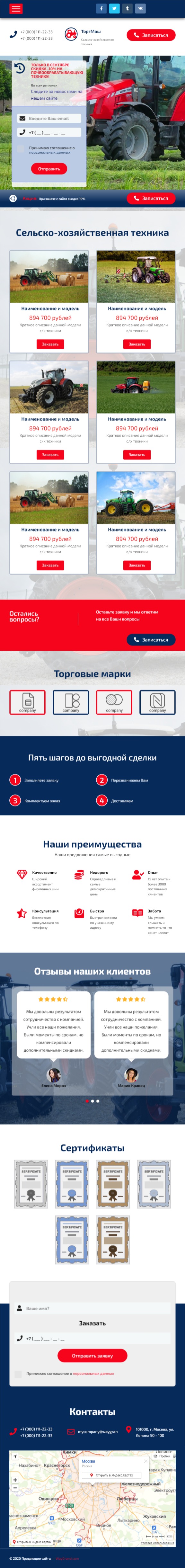 Закажите готовый продающий сайт лендинг #2553202 в за 1-3 дня «под ключ»: свёрстан, отрисован и готов к рекламе. Тематика шаблона «Сельско-хозяйственная техника».