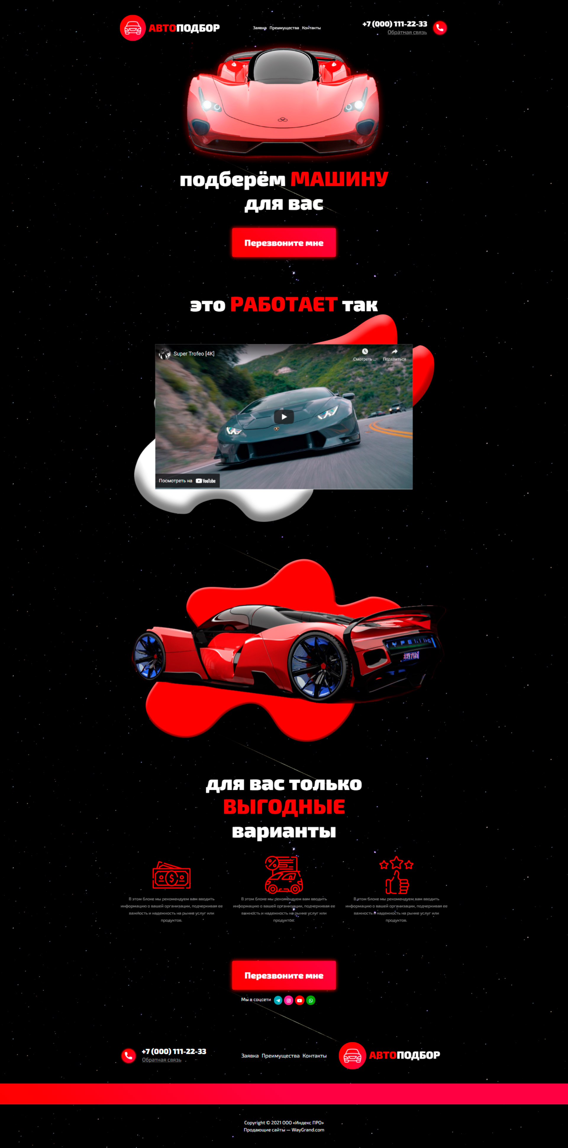 Закажите готовый продающий сайт лендинг #3275201 в за 1-3 дня «под ключ»: свёрстан, отрисован и готов к рекламе. Тематика шаблона «Автоподбор».
