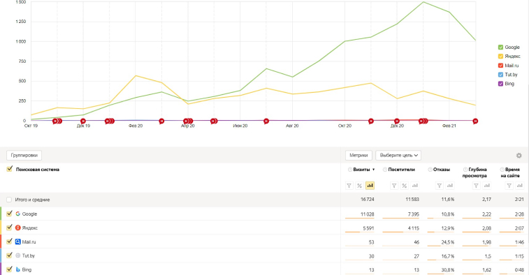 После этого на примере данного анализа был составлен перечень ключевых слов, а также определены приоритетные для продвижения страницы