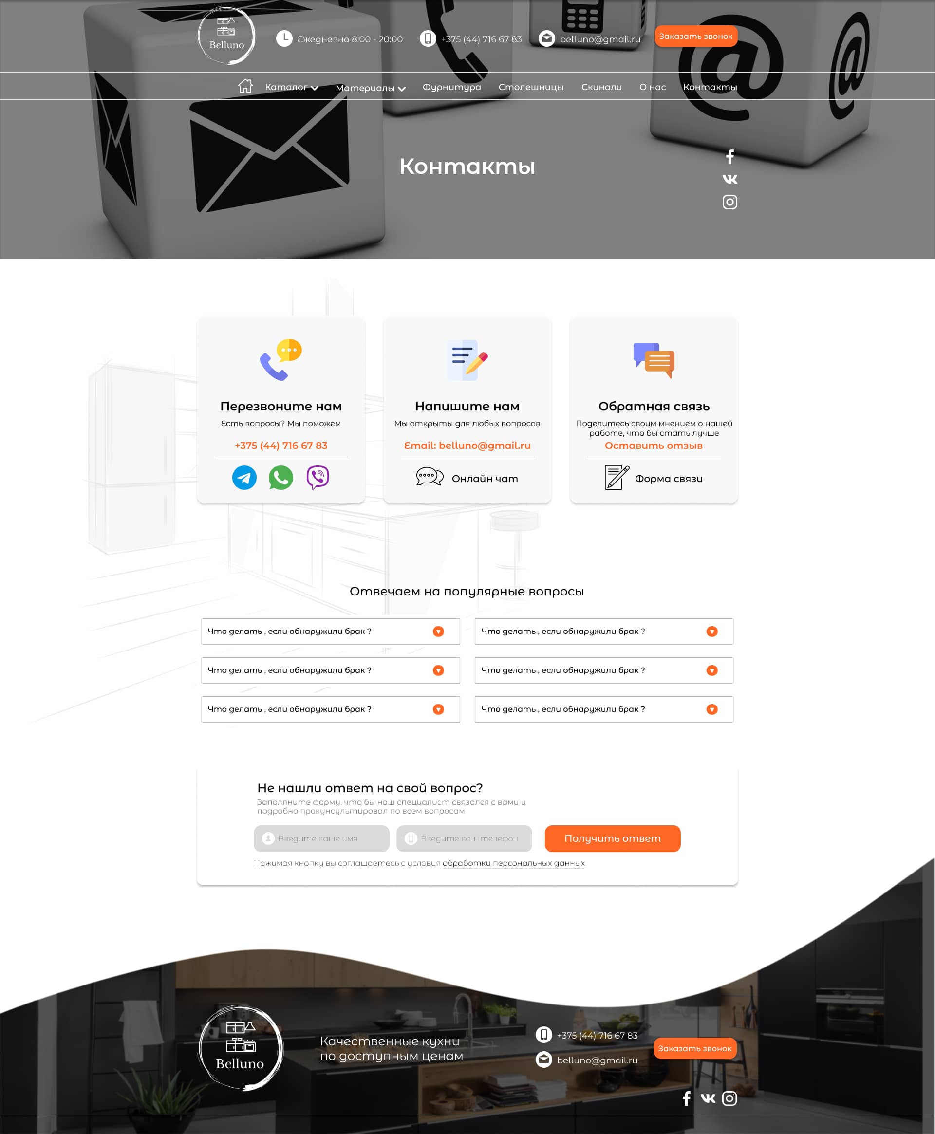 Закажите готовый продающий сайт визитка #282 в за 5-7 дня «под ключ»: свёрстан, отрисован и готов к рекламе. Тематика шаблона «Кухни».