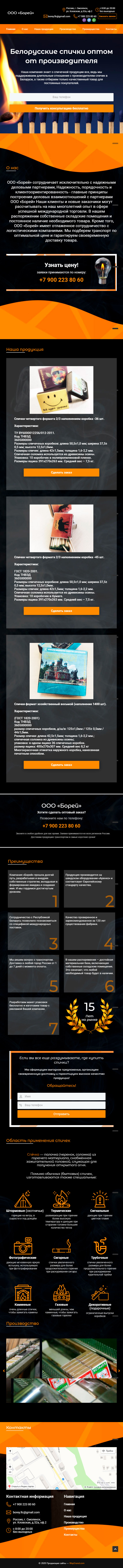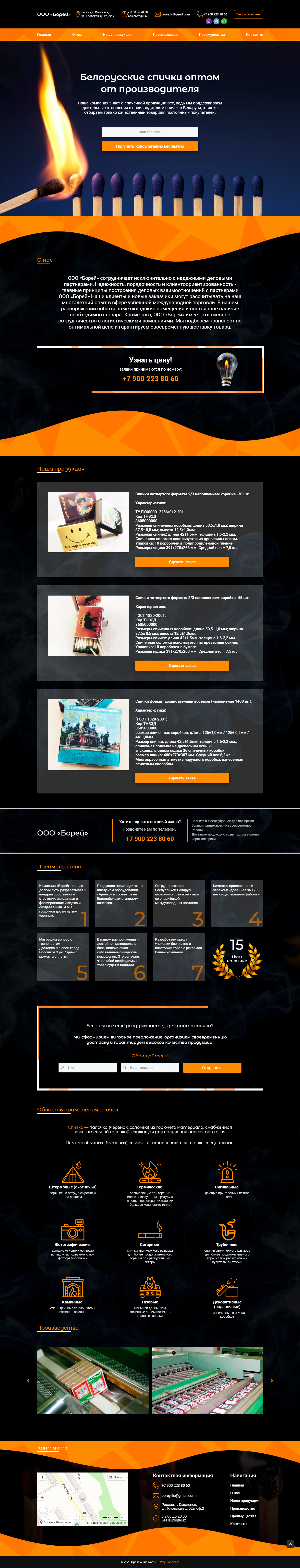 Закажите готовый продающий сайт лендинг #115 в за 1-3 дня «под ключ»: свёрстан, отрисован и готов к рекламе. Тематика шаблона «Белорусские спички оптом от производителя».