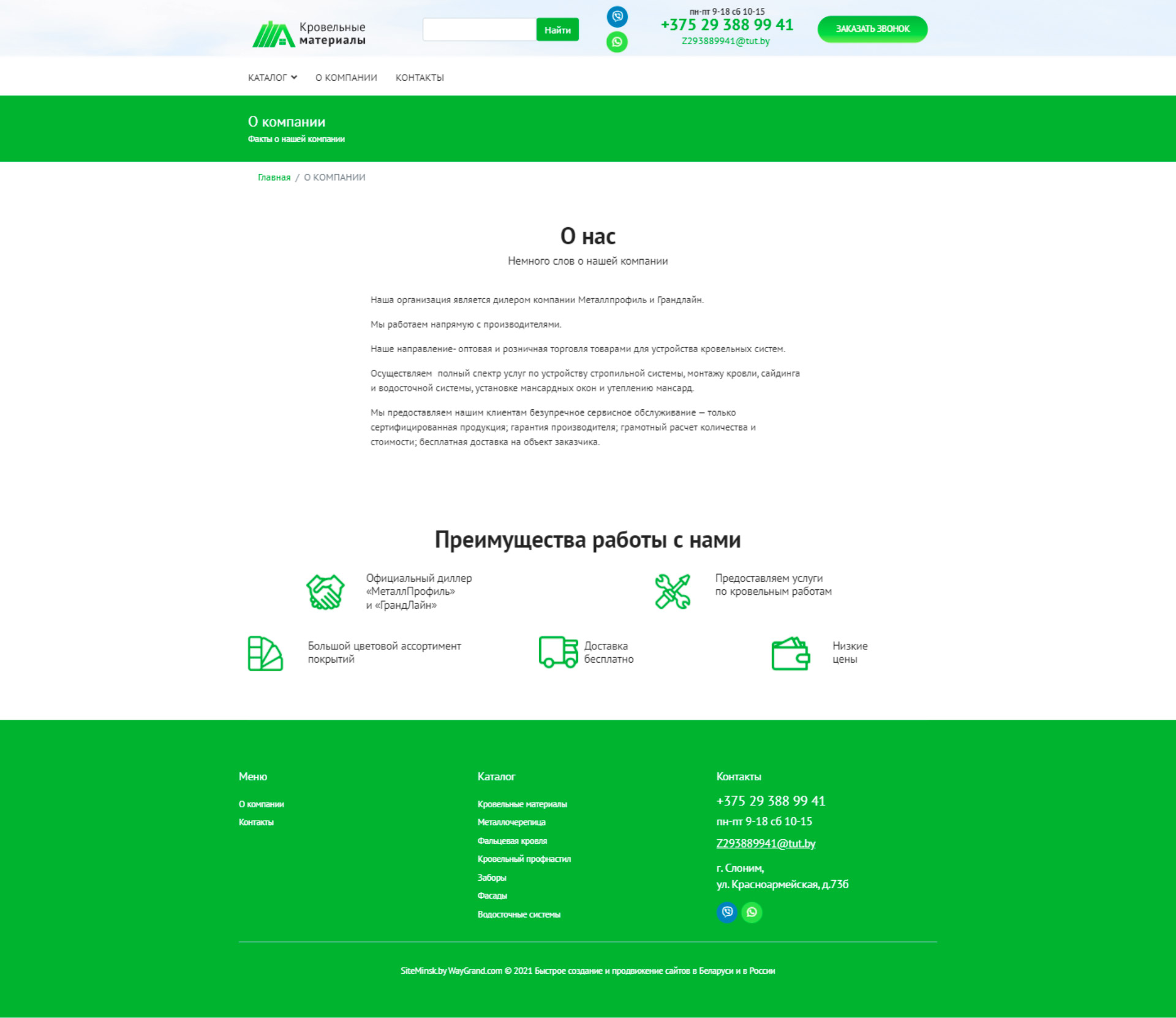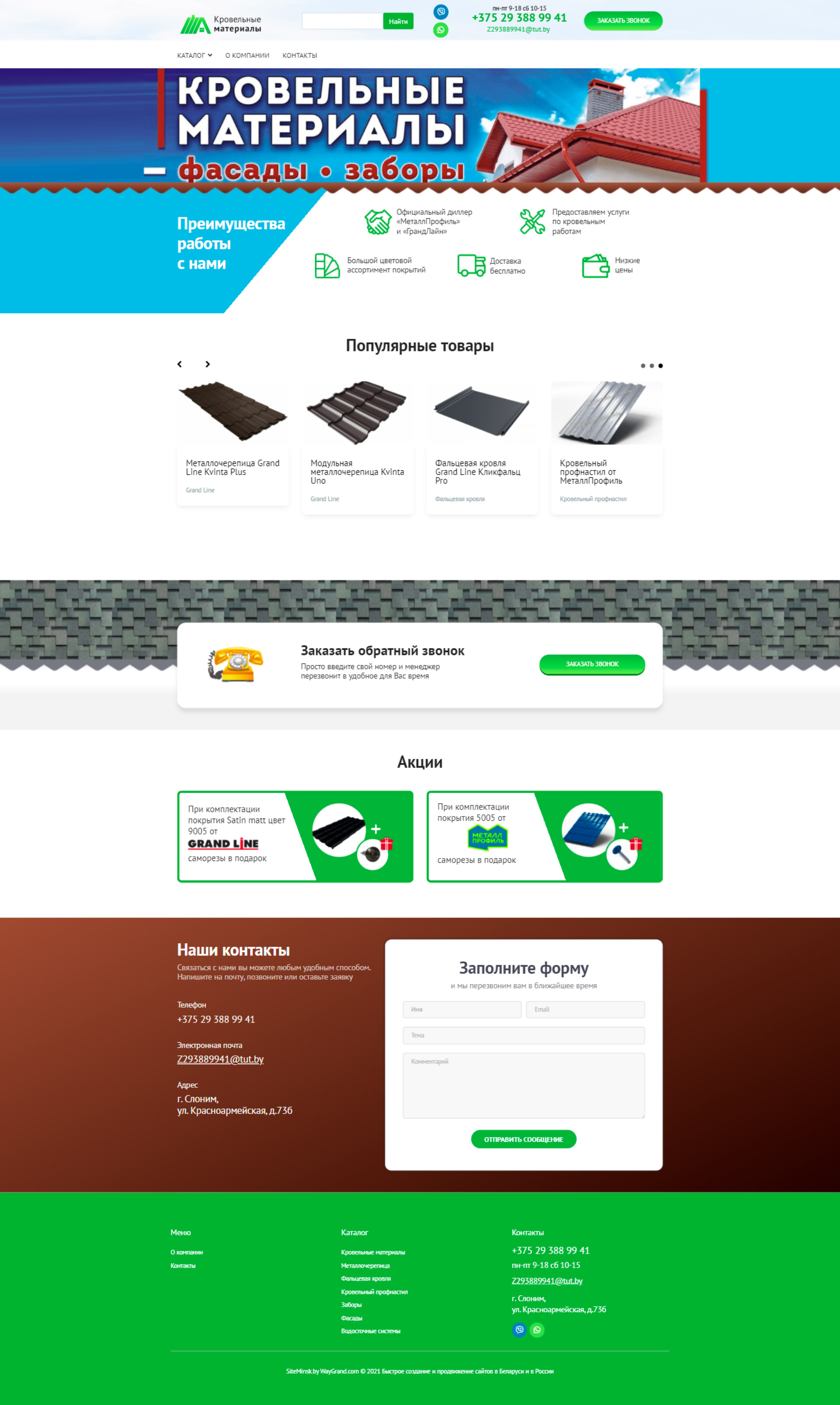 Закажите готовый продающий сайт визитка #324 в «под ключ» на waygrand по выгодной цене: свёрстан, отрисован и готов к рекламе. Тематика шаблона «Кровельные материалы».