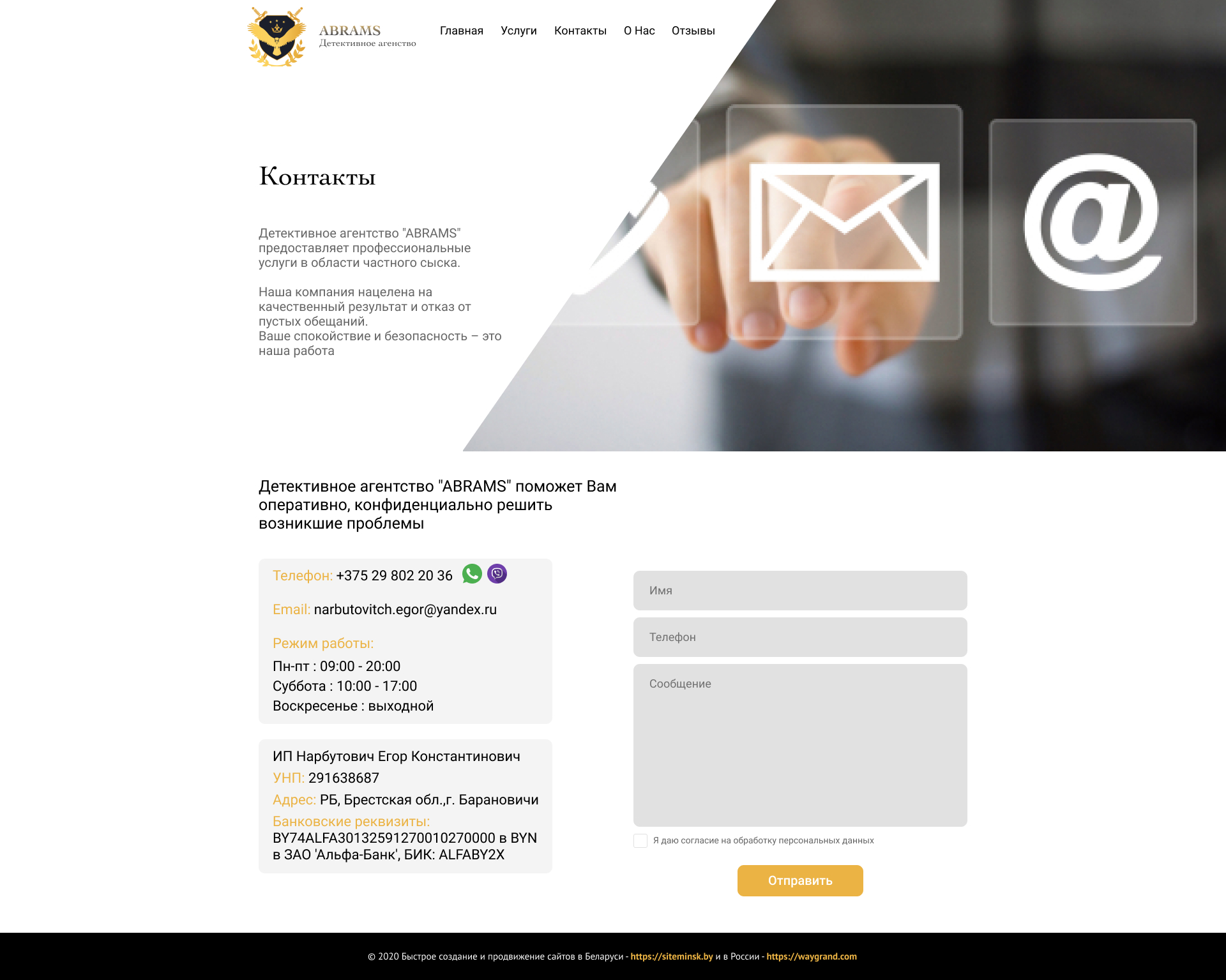 - Блок "Контакты" с формой "Отправить"