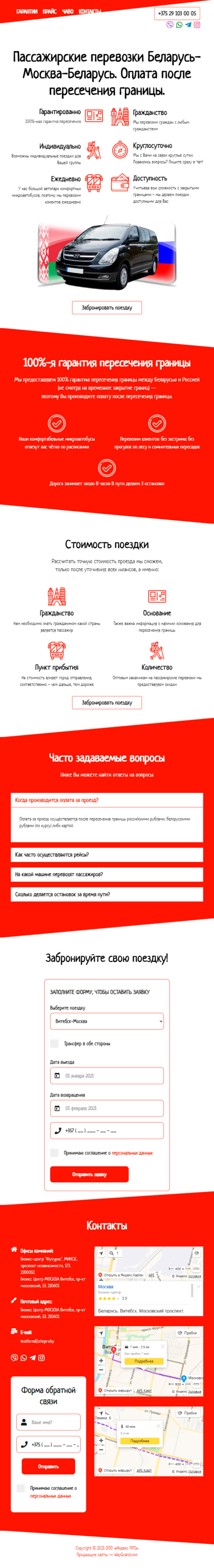 Закажите готовый продающий сайт лендинг #2528201 в за 1-3 дня «под ключ»: свёрстан, отрисован и готов к рекламе. Тематика шаблона «Пассажирские перевозки Беларусь-Москва-Беларусь».